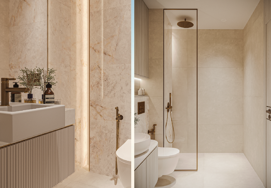 Genießen Sie den eleganten lobby Bereich und nutzen Sie die High-speed elevators, um bequem zu Ihrer Wohnung zu gelangen. Dank des Sicherheitssystems und der Concierge-Services können Sie sich rundum sicher und geschützt fühlen. Ihre Fahrzeuge finden in der Covered Parking Area Platz und in den Coworking Spaces können Sie produktiv arbeiten.