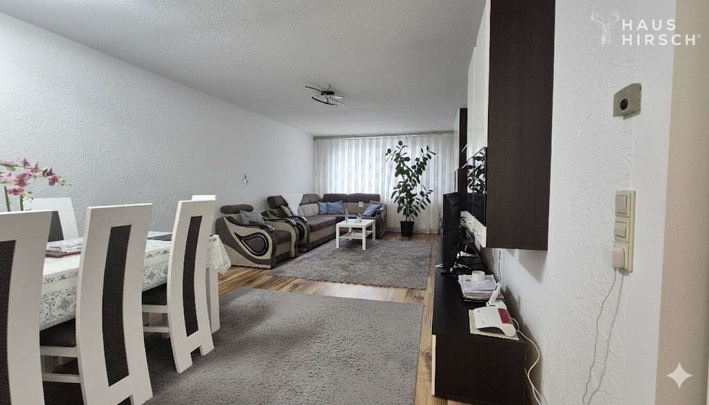 Das Herzstück der Wohnung bildet das lichtdurchflutete Wohnzimmer mit direktem Zugang zum großzügigen West-Balkon. Hier genießen Sie nicht nur die Abendsonne, sondern auch einen weiten Fernblick, der den Alltag sofort entschleunigt – ideal für entspannte Abende oder gesellige Stunden im Freien.