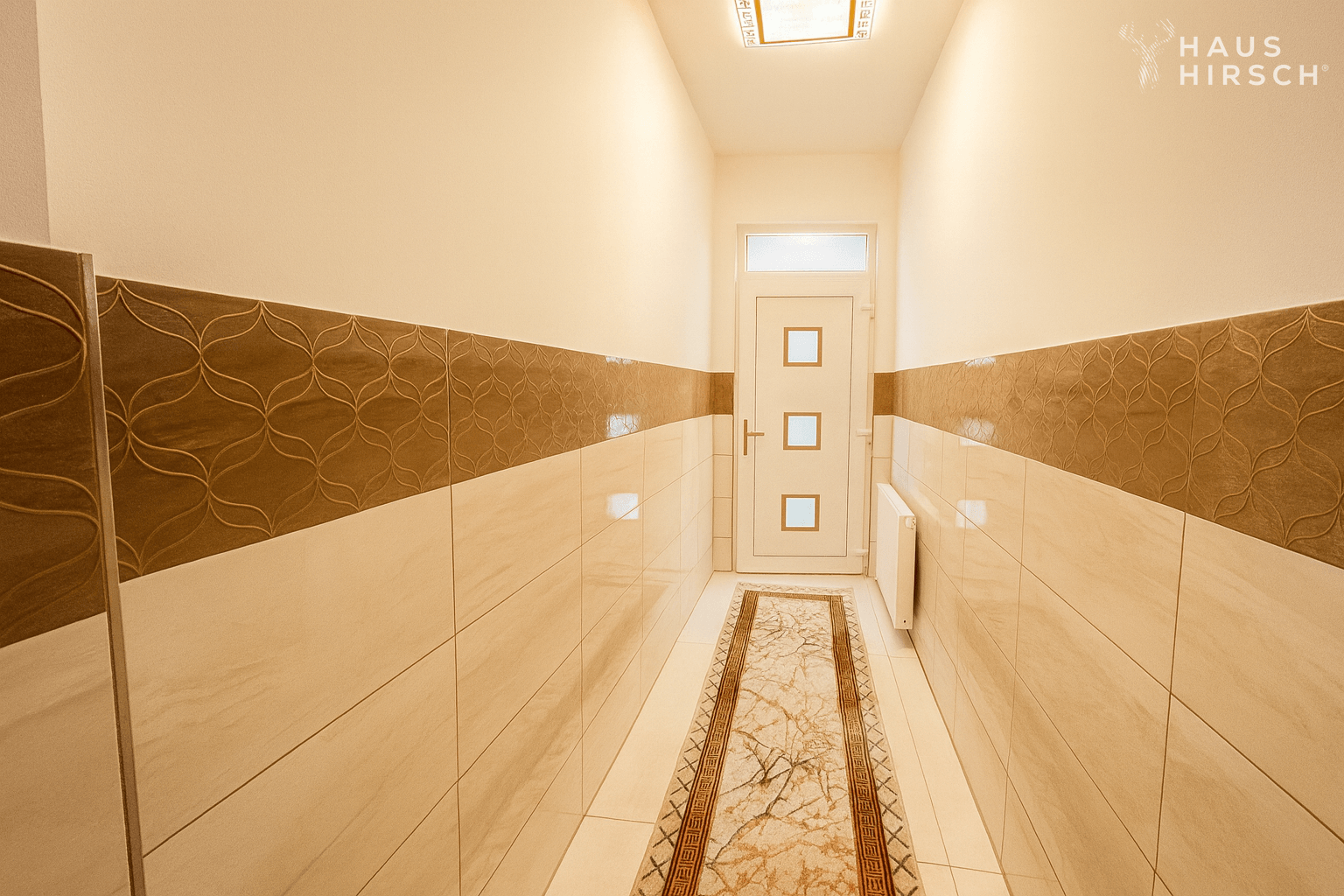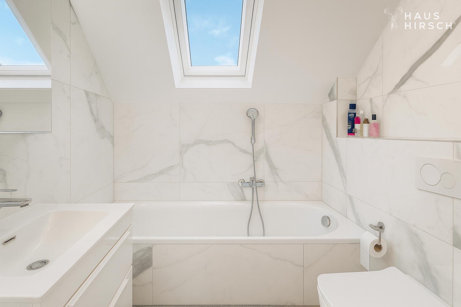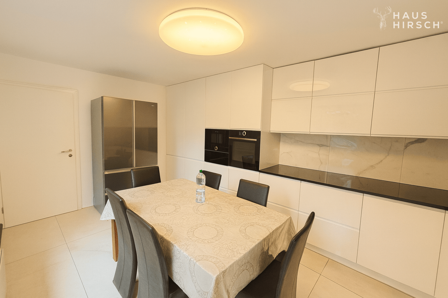 Im Erdgeschoss erwartet Sie ein modernes Ambiente mit hochwertigen 120x60 cm Fliesen und elektrischen Jalousien. Zwei neue Bäder mit Hänge-WC und Bidet-Funktion sorgen für Luxus pur. Die dreifach-verglasten Kunststofffenster sorgen für eine optimale Isolierung. Der restaurierte Treppenaufgang ins Obergeschoss und der neue Treppenaufgang ins Dachgeschoss runden das Gesamtbild ab.