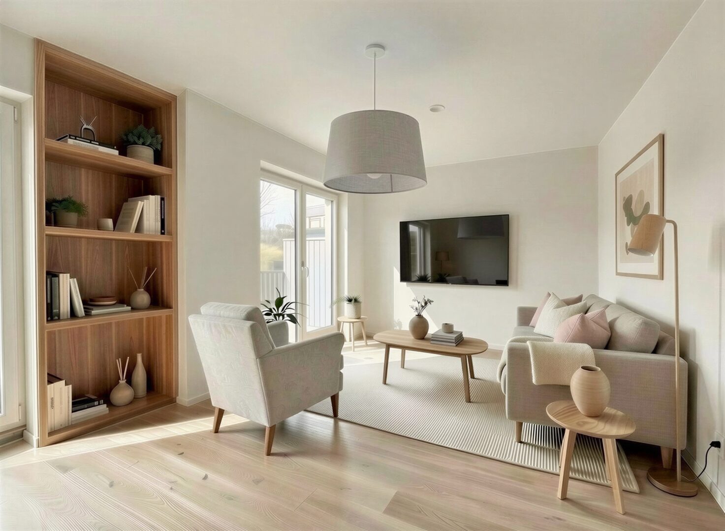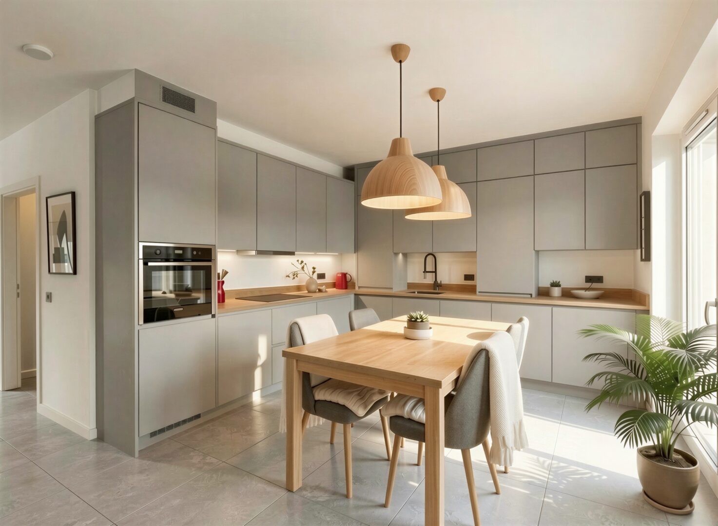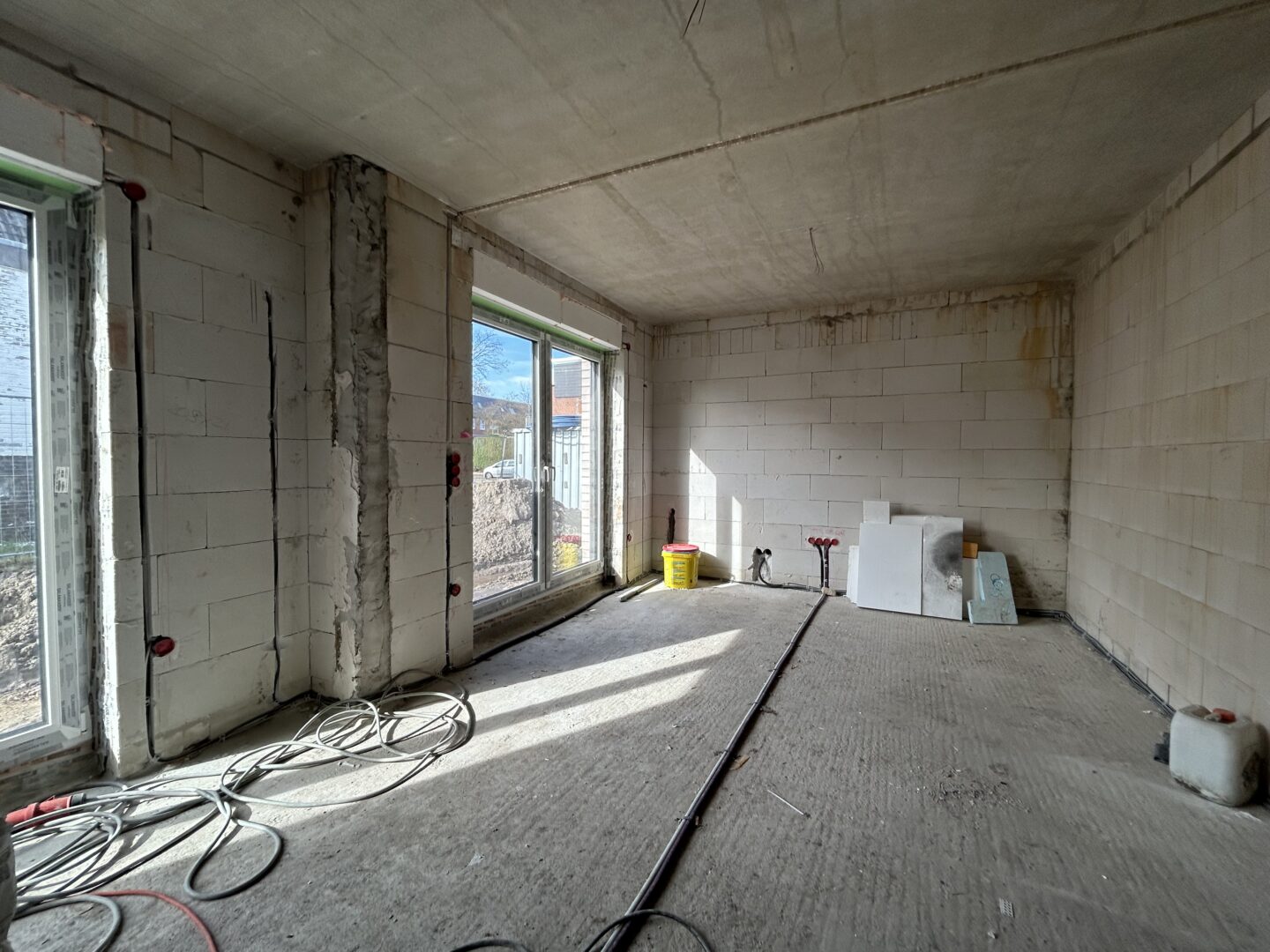 Die Erdgeschosswohnung bietet auf ca. 65,4 m² Wohnfläche einen durchdachten 2-Zimmer-Grundriss mit einem Schlafzimmer. Ergänzt wird das Raumangebot durch ein modernes Badezimmer mit großer bodentiefer Dusche. Ein weiterer, innenliegender Raum mit ca. 4,80 m² war ursprünglich als Hauswirtschaftsraum vorgesehen und eignet sich ideal für Waschmaschine, Trockner und zusätzlichen Stauraum. Durch seine praktische Größe lässt sich dieser Raum jedoch ebenso gut als kompakter Homeoffice- oder Arbeitsbereich nutzen. Zu den weiteren Ausstattungsmerkmalen zählen unter anderem eine Fußbodenheizung, elektrische Rollläden an allen Fenstern sowie ein offener Wohnbereich, der ein helles und kommunikatives Wohngefühl schafft.