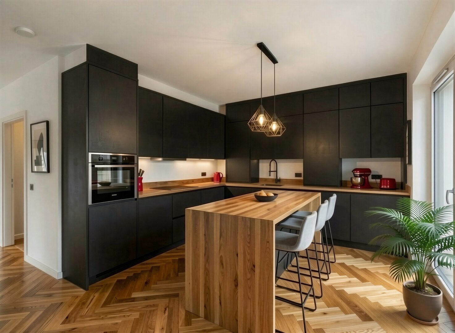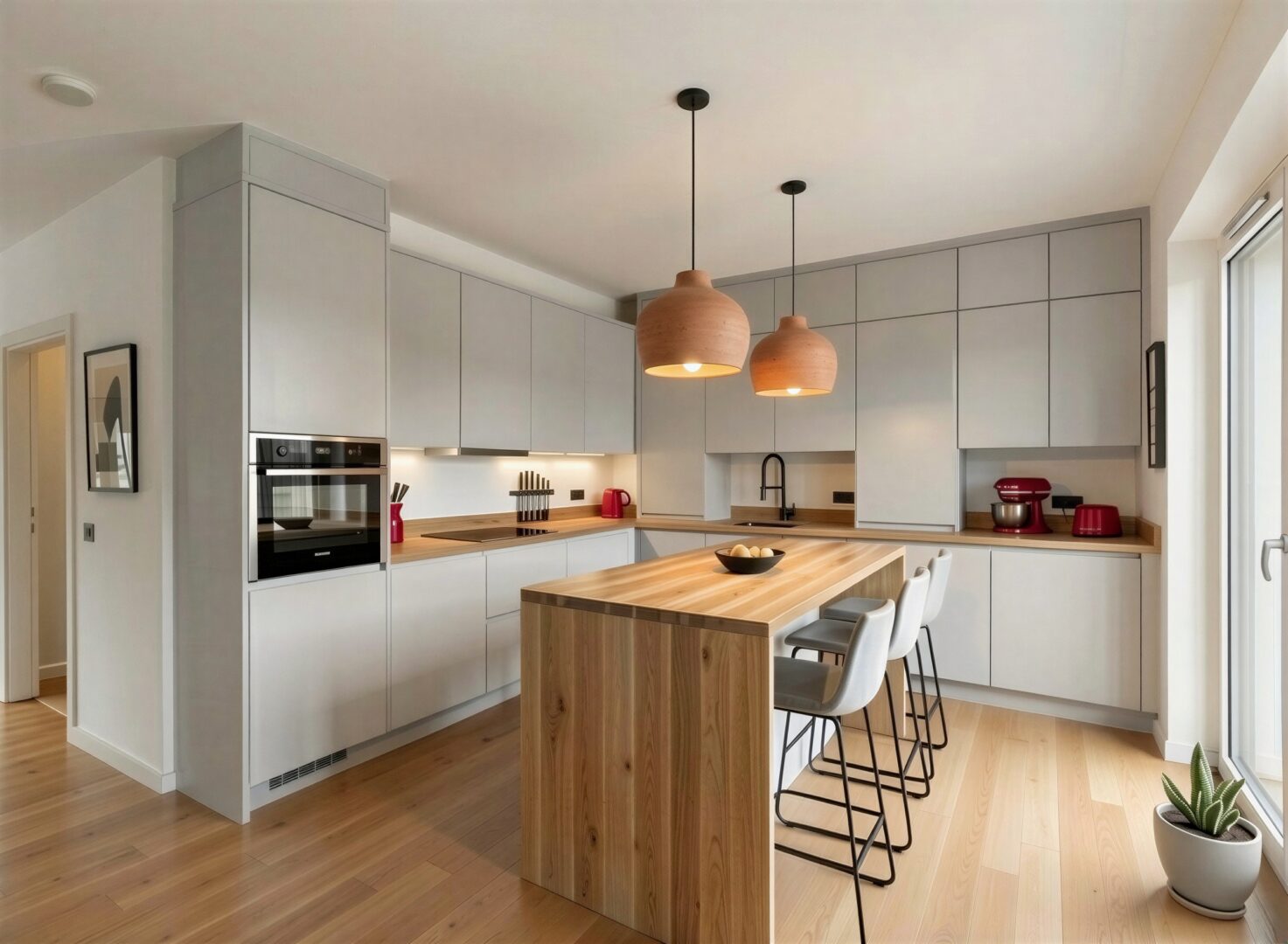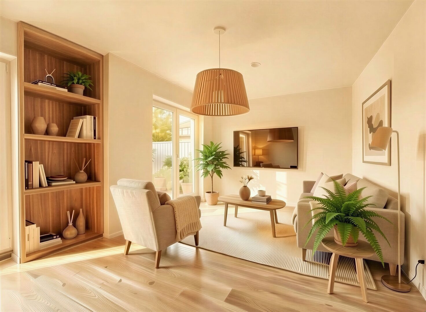 Die Erdgeschosswohnung bietet auf ca. 65,4 m² Wohnfläche einen durchdachten 2-Zimmer-Grundriss mit einem Schlafzimmer. Ergänzt wird das Raumangebot durch ein modernes Badezimmer mit großer bodentiefer Dusche. Ein weiterer, innenliegender Raum mit ca. 4,80 m² war ursprünglich als Hauswirtschaftsraum vorgesehen und eignet sich ideal für Waschmaschine, Trockner und zusätzlichen Stauraum. Durch seine praktische Größe lässt sich dieser Raum jedoch ebenso gut als kompakter Homeoffice- oder Arbeitsbereich nutzen. Zu den weiteren Ausstattungsmerkmalen zählen unter anderem eine Fußbodenheizung, elektrische Rollläden an allen Fenstern sowie ein offener Wohnbereich, der ein helles und kommunikatives Wohngefühl schafft.