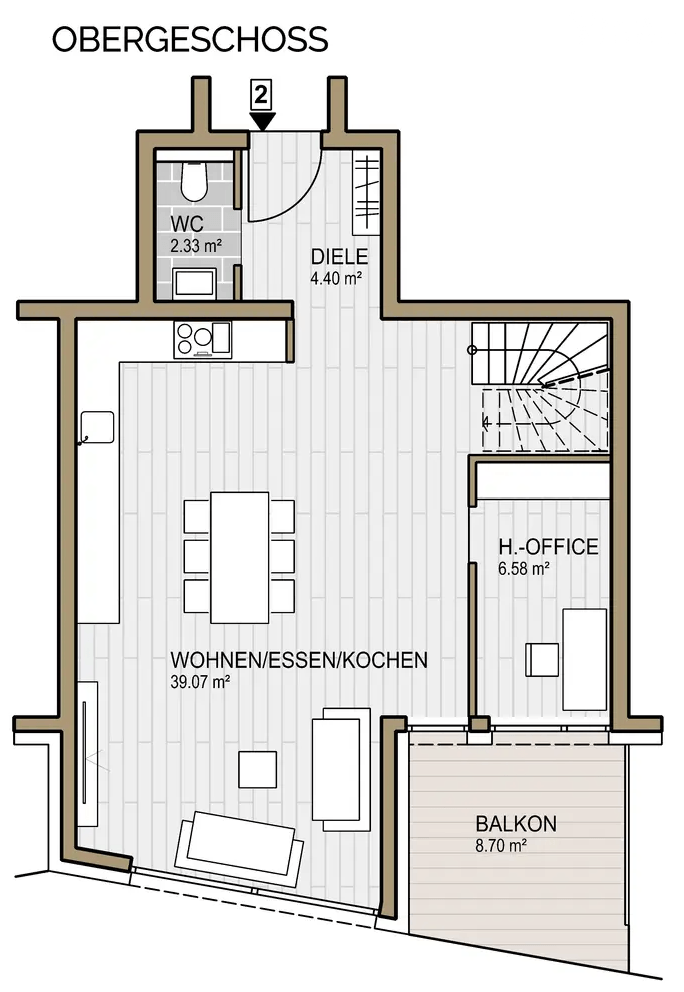 Von insgesamt 7 Wohnungen sind nur noch 2 Einheiten verfügbar. Diese können entweder separat oder gemeinsam als großzügige Maisonette erworben werden – eine seltene Flexibilität, die vielfältige Möglichkeiten eröffnet.