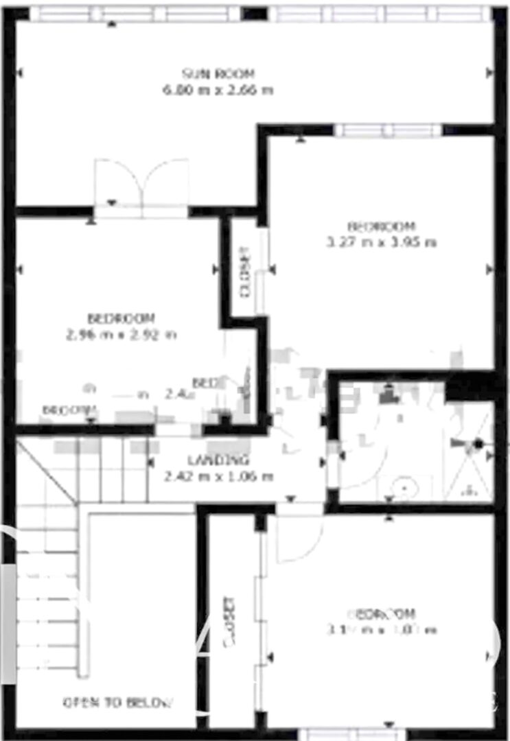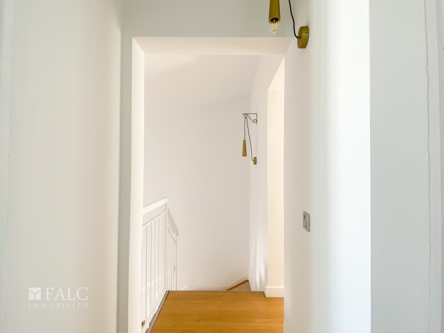 Im Obergeschoss erwarten Sie drei Doppelschlafzimmer mit Einbauschränken und ein Badezimmer mit Badewanne.