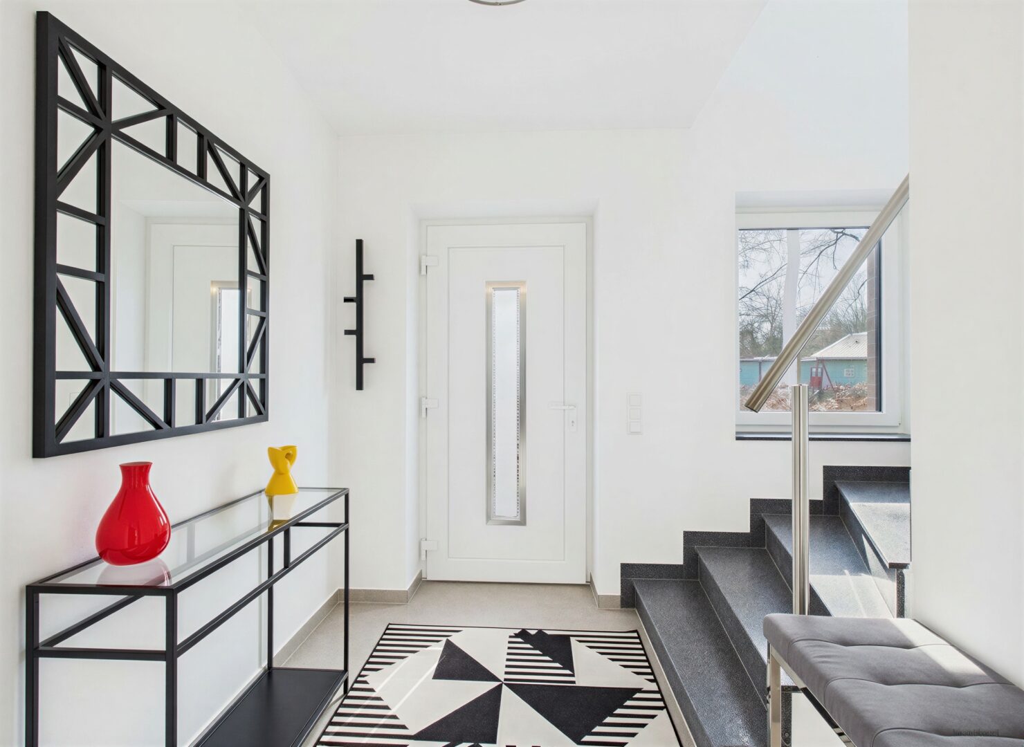 Die Klinkerfassade und weitere hochwertige Materialien, dreifach verglaste Kunstofffenster, elektrische Rolläden, etc. sorgen nicht nur für einen perfekten optischen Eindruck, sondern halten auch über die folgenden Jahrzehnte die Kosten absolut gering.