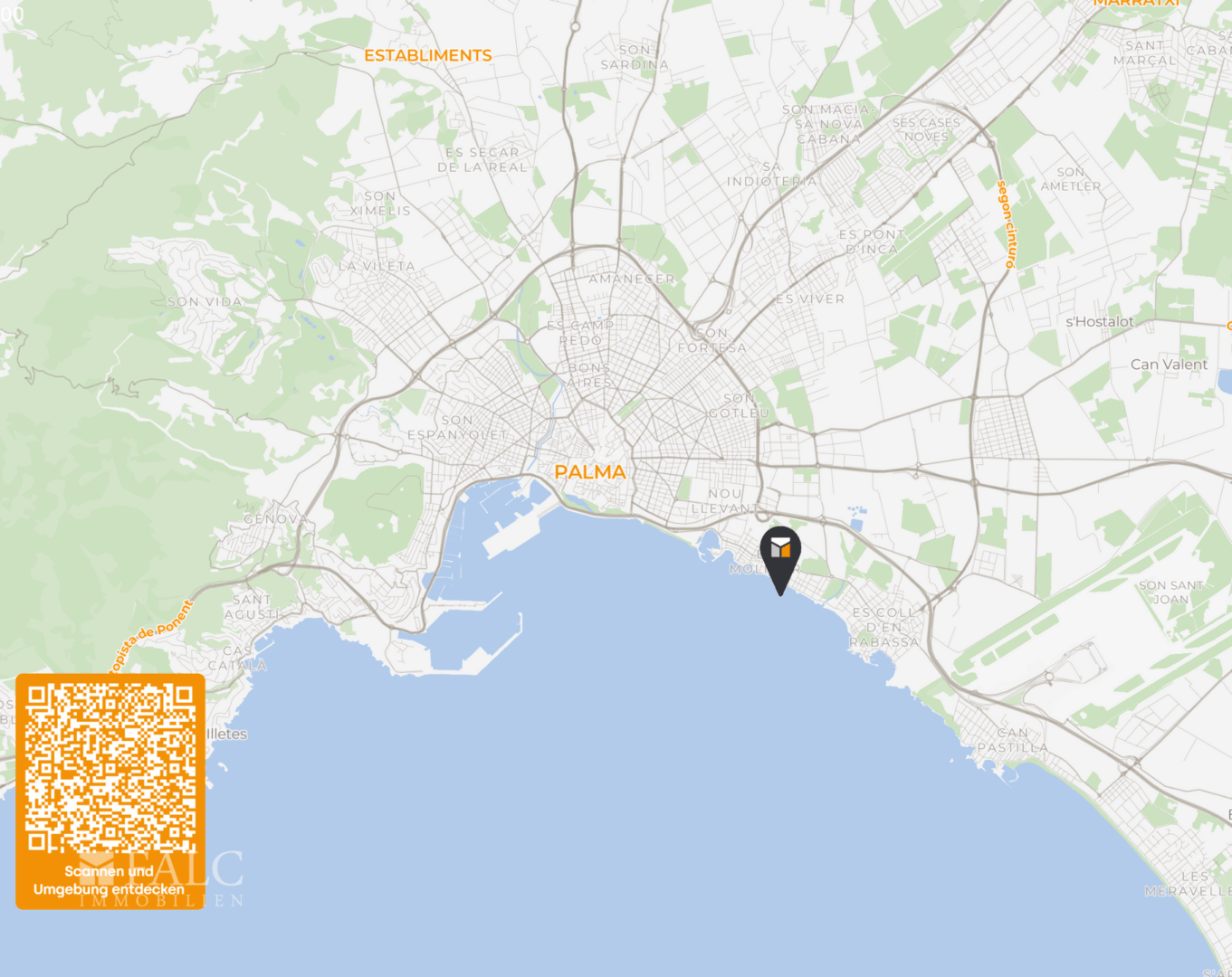 Die Lage in Es Molinar zählt zu den gefragtesten auf der Insel. Das ehemalige Fischer- und Hafenviertel hat sich in den vergangenen Jahren zu einem charmanten Wohn- und Ausgehviertel entwickelt, das maritimes Flair mit einer lebendigen Gastronomieszene, kleinen Boutiquen und der unmittelbaren Nähe zum Meer verbindet. Von der Wohnung aus erreicht man den Strand in wenigen Minuten zu Fuß, das Zentrum von Palma in weniger als fünf Minuten und den Flughafen in rund zehn Minuten.