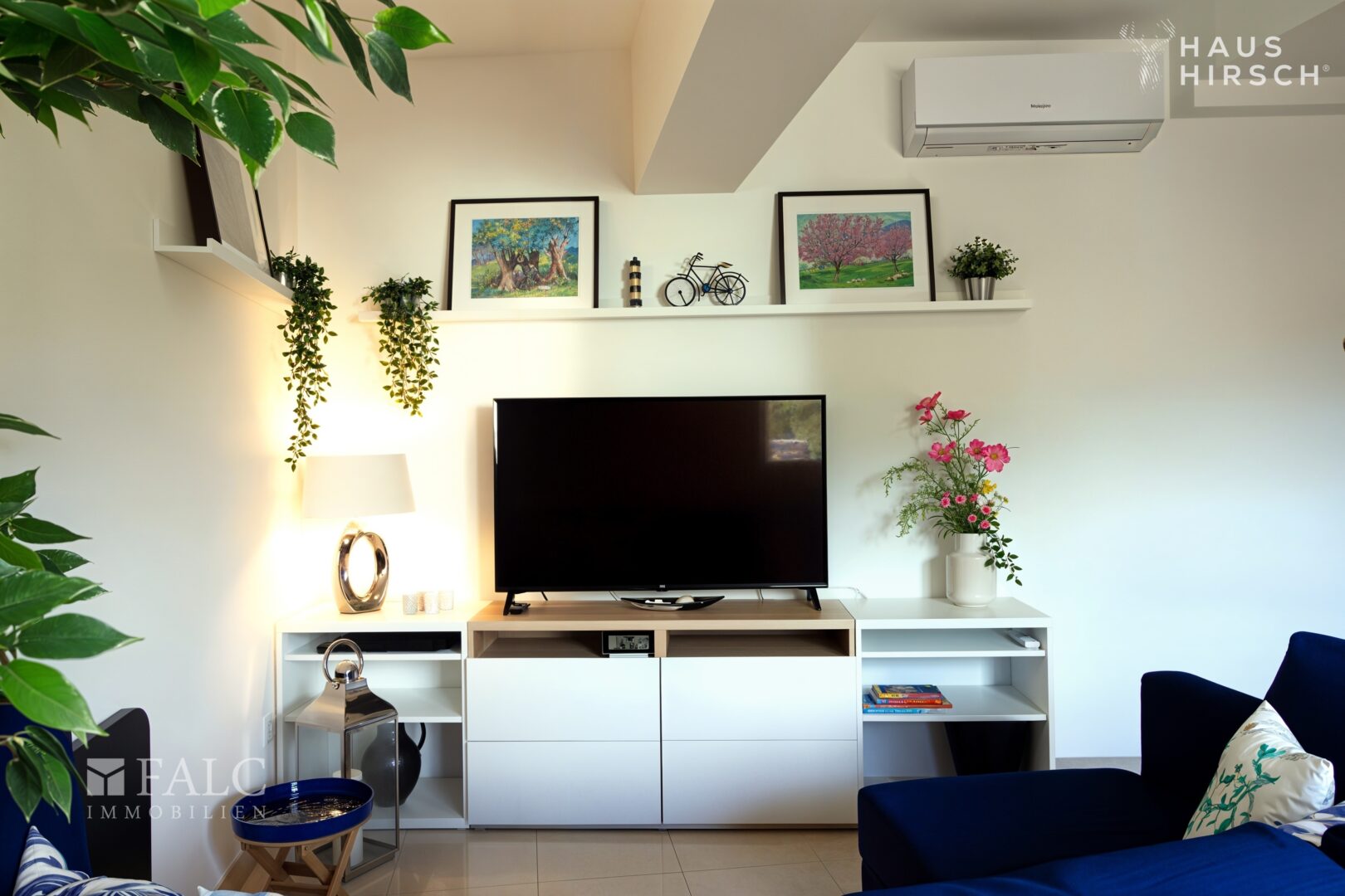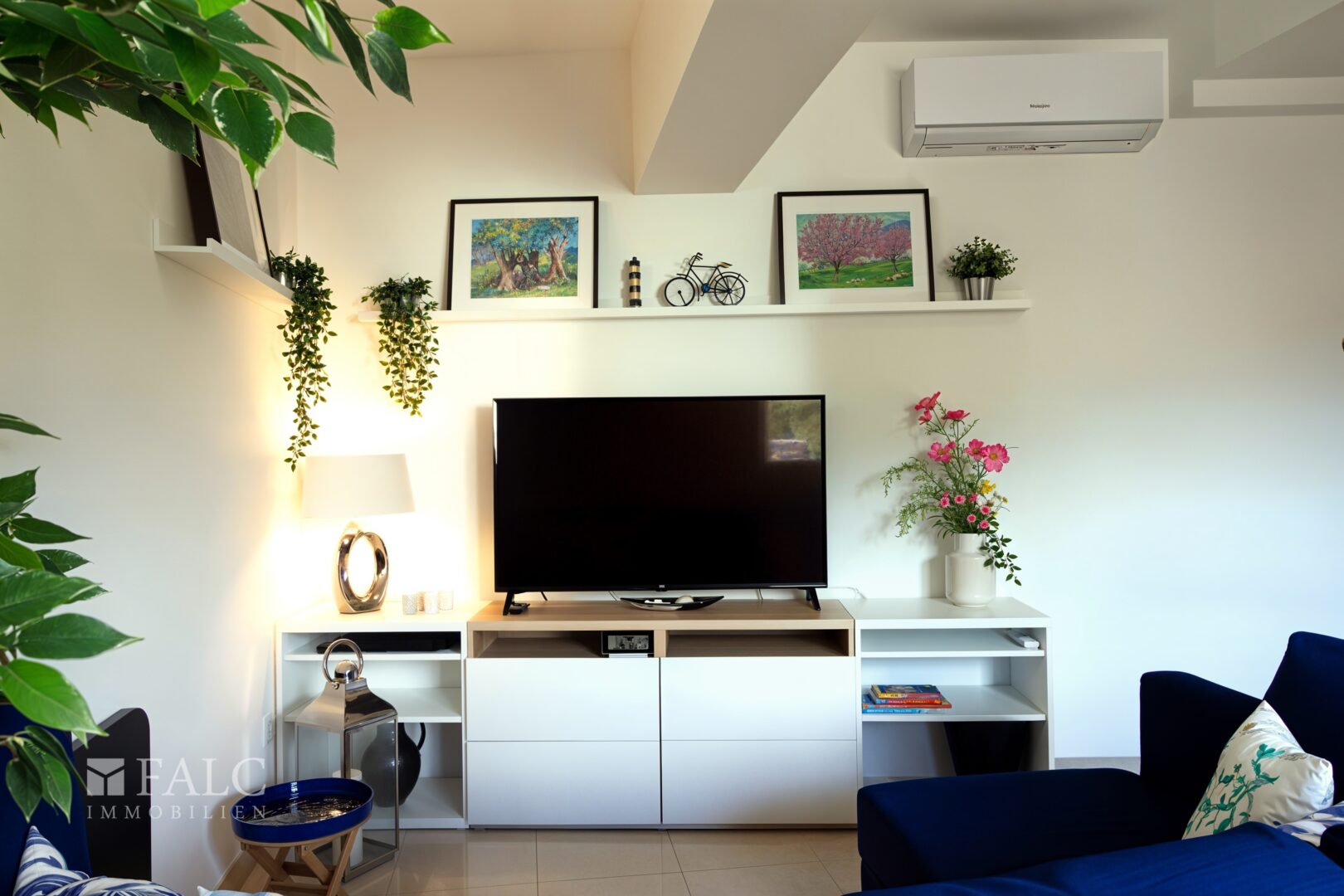 Die hochwertige Innenausstattung umfasst eine neue, voll ausgestattete Küche mit Induktionskochfeld, Dampfbackofen, Kühlschrank, Kaffeemaschine, Toaster sowie stilvollem Geschirr und Kochutensilien – ideal für Selbstversorger, die auch im Urlaub Wert auf Komfort legen. Dank Klimaanlage und elektrischer Heizung im Wohn- und Schlafbereich ist das Apartment sowohl im Sommer als auch in der kühleren Jahreszeit sehr angenehm bewohnbar. Der Stil ist modern-mediterran, mit hochwertigen Materialien, eleganter Beleuchtung und einer klaren, einladenden Raumgestaltung.