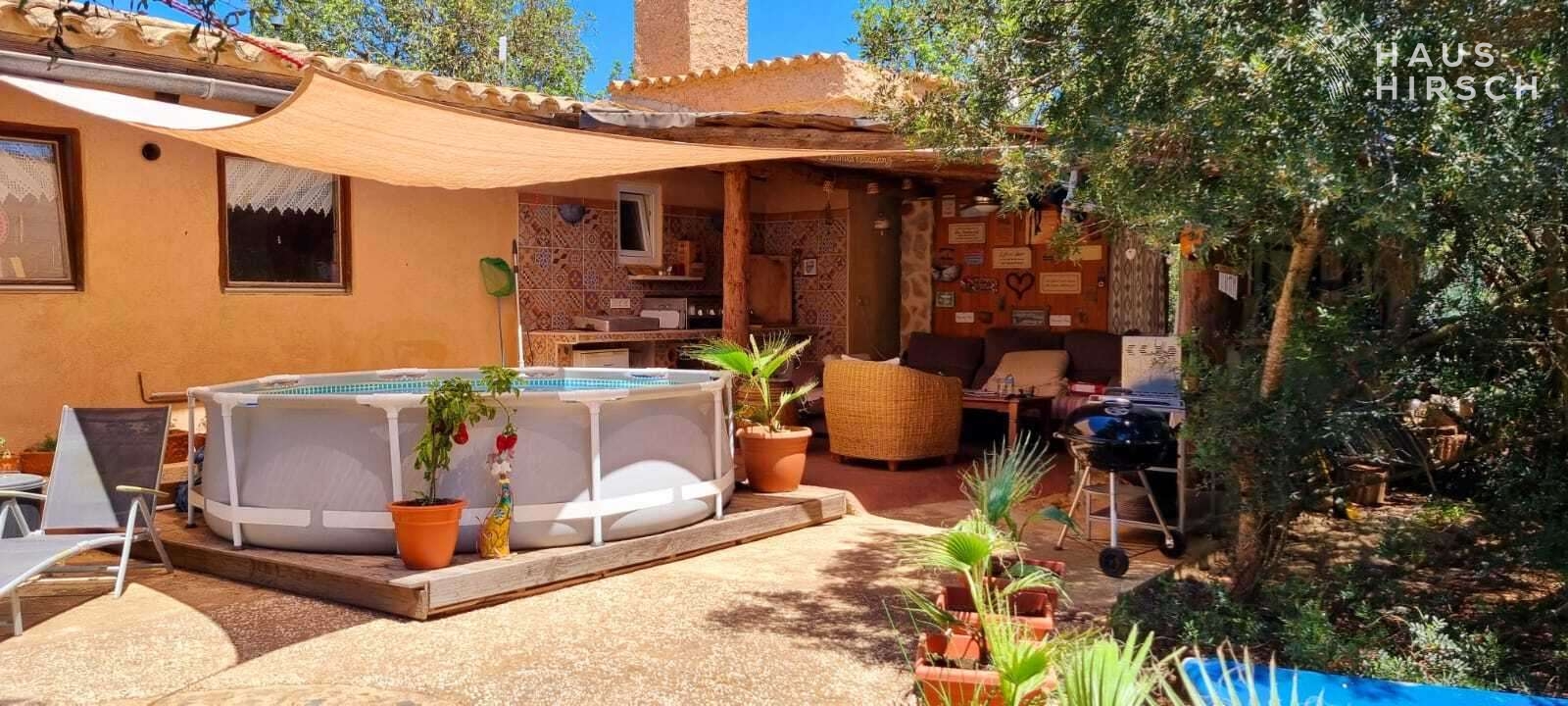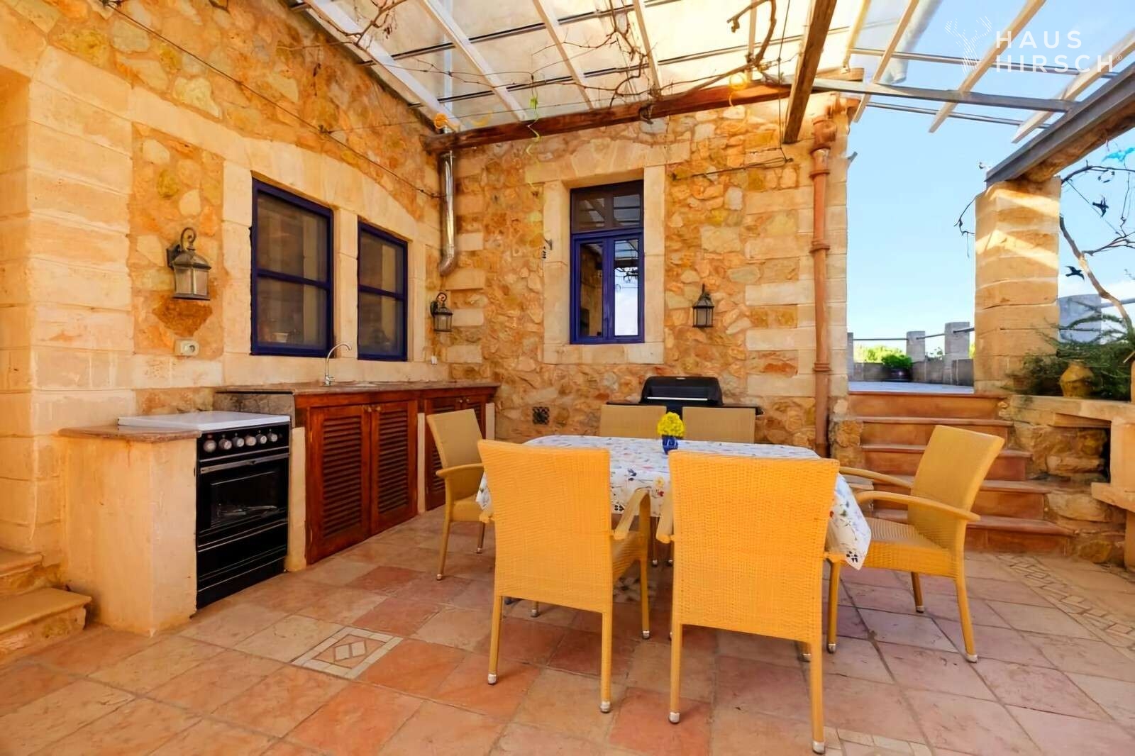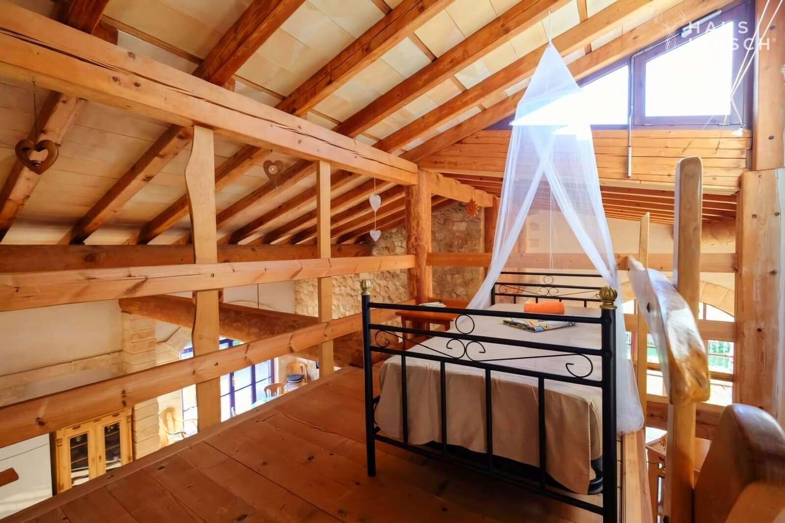 Die Hauptfinca mit rund 230 m² Wohnfläche wurde im authentisch-mediterranen Stil erbaut und von internationalen Handwerkern mit ausgesuchten Naturmaterialien vollendet: Österreichische Holzbalken, eine imposante Eingangstür aus Afrika, eine markante Natursteinwand und ein einzigartiger Holzofen mit Dreizugtechnik schaffen unverwechselbaren Charakter.