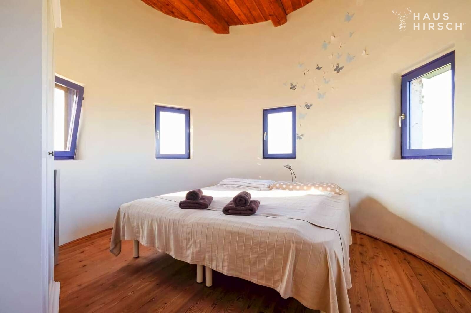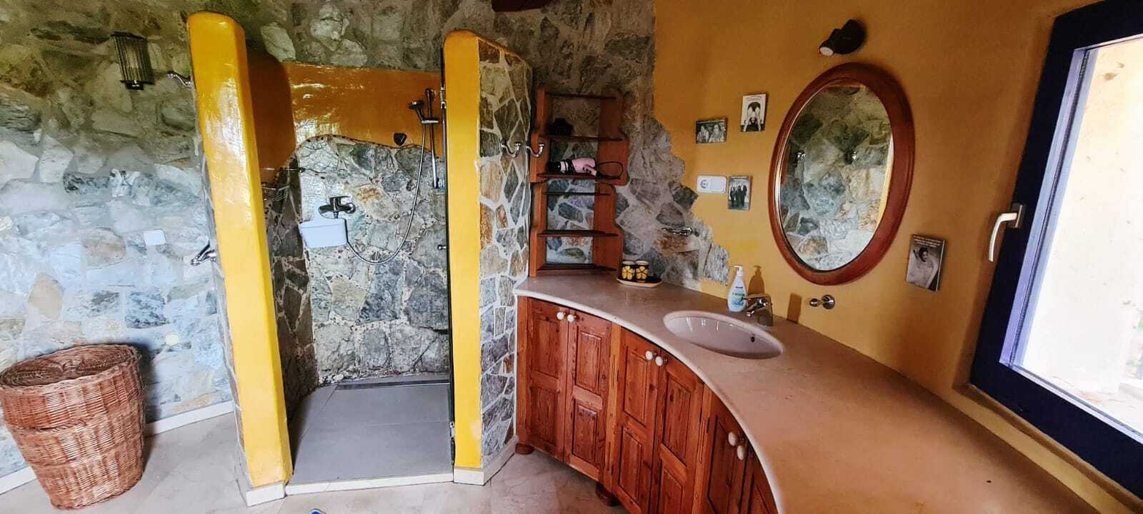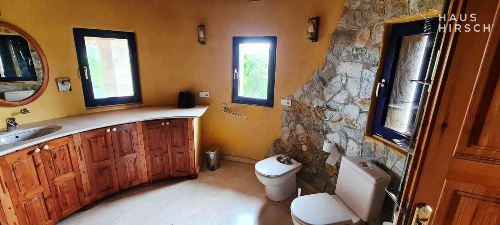 Die Hauptfinca mit rund 230 m² Wohnfläche wurde im authentisch-mediterranen Stil erbaut und von internationalen Handwerkern mit ausgesuchten Naturmaterialien vollendet: Österreichische Holzbalken, eine imposante Eingangstür aus Afrika, eine markante Natursteinwand und ein einzigartiger Holzofen mit Dreizugtechnik schaffen unverwechselbaren Charakter.