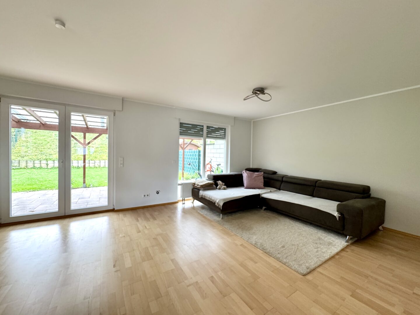 Das Erdgeschoss bildet den zentralen Lebensbereich. Der großzügige Wohn-, Ess- und Kochbereich ist offen gestaltet und bietet viel Raum für gemeinsames Leben. Große bodentiefe Fenster sorgen für viel Tageslicht und öffnen den Blick sowie den direkten Zugang zur überdachten Terrasse und in den Garten. Innen- und Außenbereich gehen fließend ineinander über und erweitern den Wohnraum spürbar. In Küche, Wohn-/Essbereich sowie in allen Schlafräumen ist Echtholz-Parkett verlegt, das dem Haus Wärme und Wertigkeit verleiht.