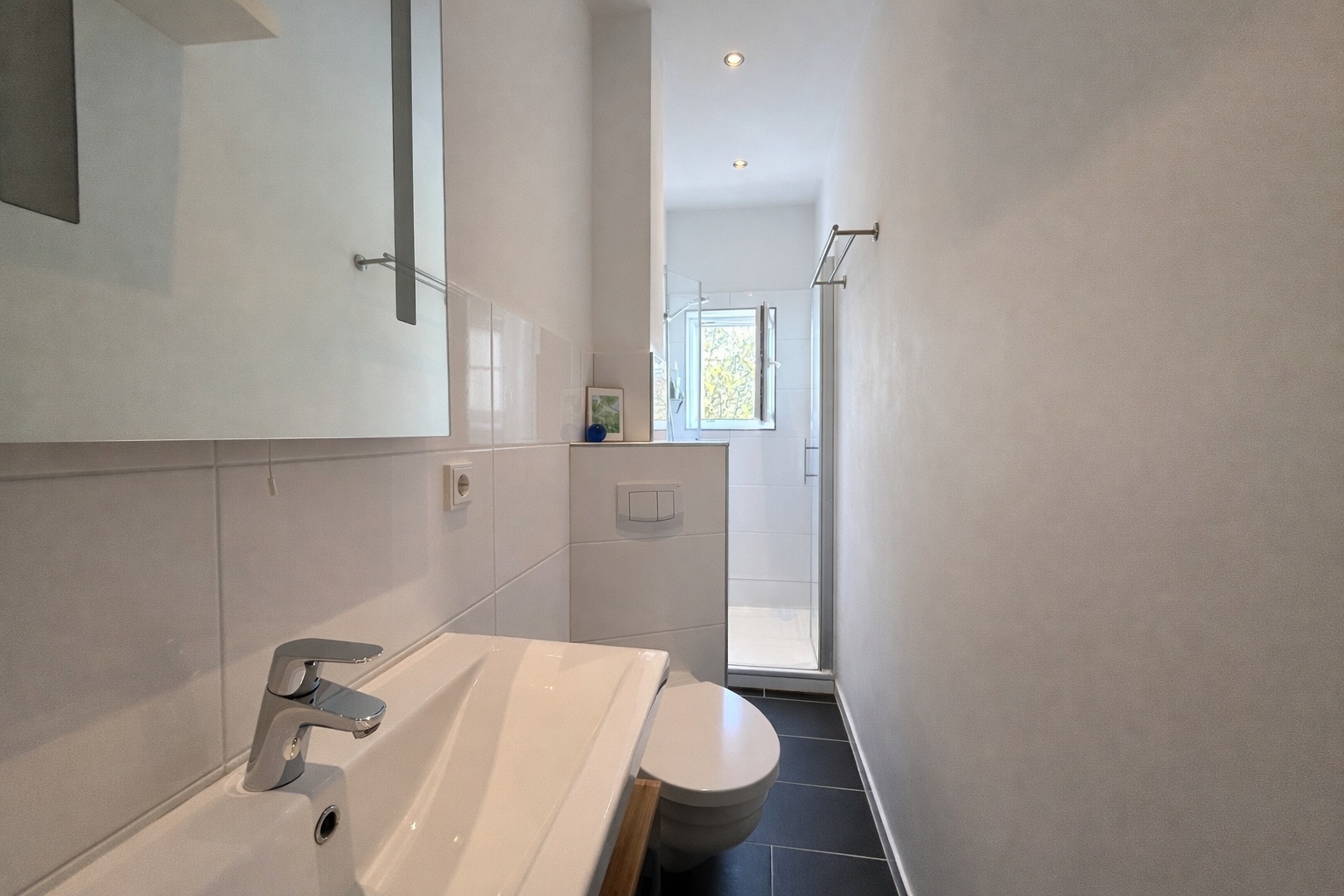 Im Jahr 2013 wurde die Wohnung umfassend saniert und hochwertig modernisiert. Im Zuge dieser Arbeiten wurde die gesamte Elektrik erneuert. Auch Küche und Badezimmer wurden vollständig neu gestaltet. Das modern ausgestattete Bad verfügt zusätzlich über eine angenehme Fußbodenheizung. Umfangreiche Trockenbauarbeiten mit abgehängten Decken und integrierten Deckenspots in Flur, Bad und Küche sorgen für ein stimmiges, modernes Wohnambiente.