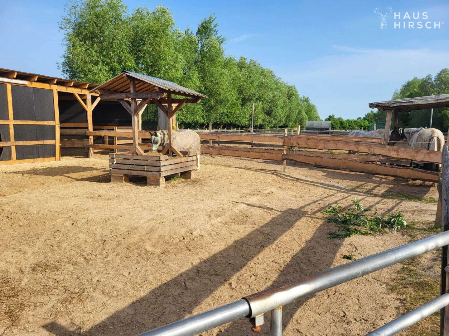 Willkommen auf unserem malerischen Pferdehof für die ganze Familie! Hier erwartet Sie ein großes Wohnhaus mit viel Platz für gemütliches Familienleben. Das kleine Wohnhaus auf dem Anwesen ist aktuell vermietet und bietet eine romantische Rückzugsmöglichkeit für Gäste oder als zusätzliche Unterkunft für Mitarbeiter. Umgeben von einem weitläufigen Grundstück, finden auf dem Pferdehof ca. 25 Pferde ein liebevolles Zuhause. Die großzügigen Stallungen und qualitativ hochwertige Ausstattung bieten ideale Bedingungen für Reitbegeisterte und ihre Vierbeiner. Tauchen Sie ein in die Welt des Reitsports und genießen Sie die idyllische Atmosphäre auf dem Pferdehof.