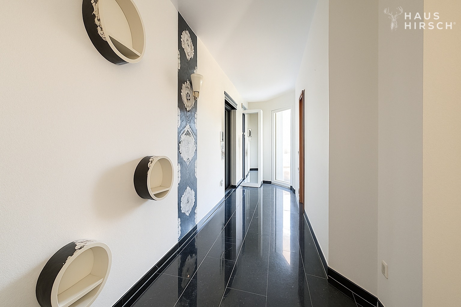 Ein elektrischer Türöffner, breite Durchgänge und ein Aufzug, der direkt bis in den Keller und die Tiefgarage führt, machen Bewegungsfreiheit selbstverständlich.