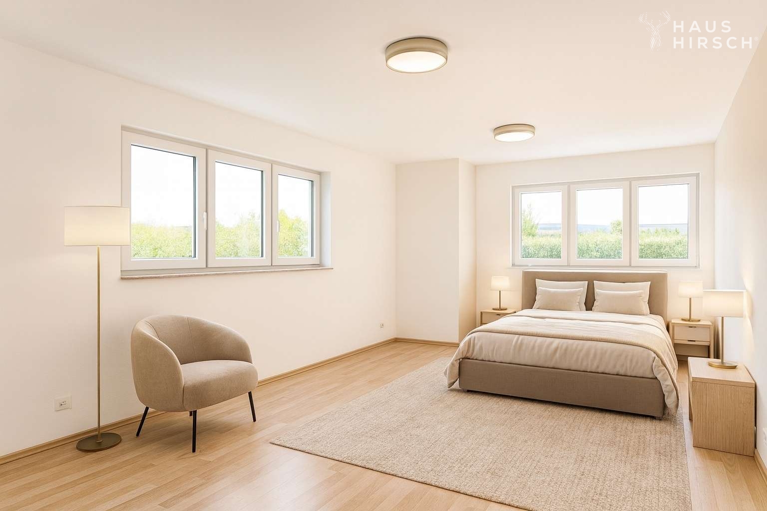 Das Hauptschlafzimmer ist besonders weitläufig und kann bei Bedarf geteilt werden – etwa in ein weiteres Schlafzimmer, eine Ankleide oder ein separates Büro.