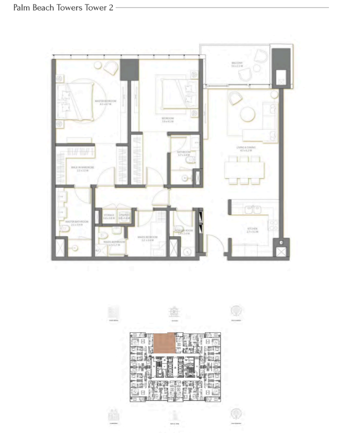 Willkommen zu Ihrem luxuriösen 2-Zimmer-Strandapartment mit Zugang zum Strand und einem Dienstbotenzimmer mit angrenzendem Badezimmer. Dieses traumhafte Anwesen bietet Familien und Investoren großartige Annehmlichkeiten, darunter einen atemberaubenden Meerblick, einen Gemeinschaftspool, einen Spielplatz für Kinder, ein Fitnesscenter und ein exklusives Spa. Genießen Sie entspannte Tage am Strand und lassen Sie sich von den hochwertigen Ausstattungsmerkmalen wie Designerküche, geräumige Schlafzimmer und luxuriöse Badezimmer verwöhnen. Eine Investition, die nicht nur Ihren Lebensstil bereichert, sondern auch langfristig Wert verspricht. Willkommen im Paradies!