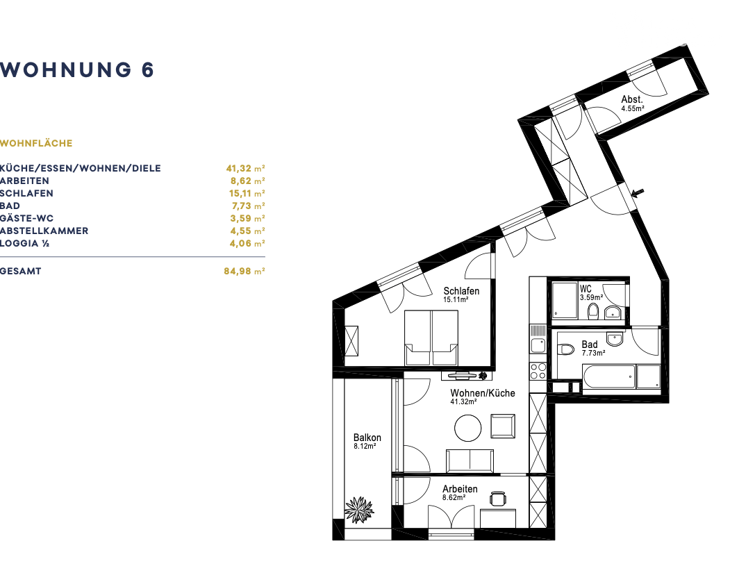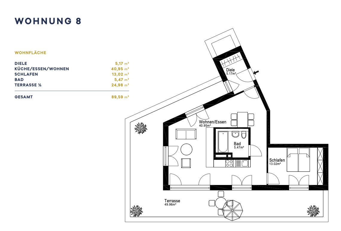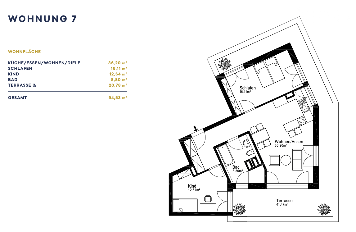 • Jede Wohnung mit großzügigem Balkon, Terrasse oder exklusiver Dachterrasse.