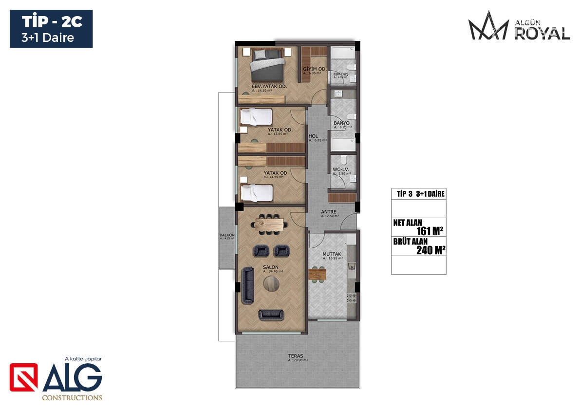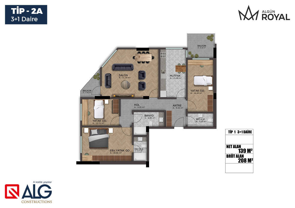 Lüks ve konforu en üst düzeyde sunan seçkin bir konut projesi olan Projekt Royal'e hoş geldiniz. Tripleks villalar, dubleks villalar, maisonetler ve dairelerden oluşan bir seçki ile size en yüksek beklentilerinizi karşılayan bir ev sunuyoruz.