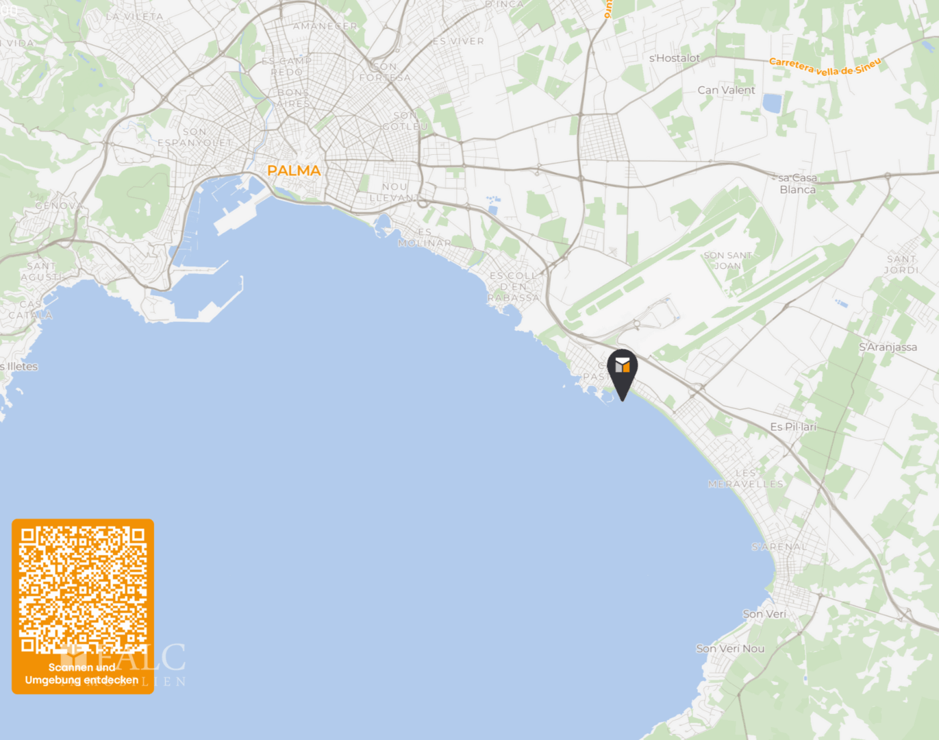 Das Anwesen befindet sich in einer ruhigen, aber sehr gut angebundenen Gegend mit Supermärkten, Restaurants, öffentlichen Verkehrsmitteln und allen Dienstleistungen in unmittelbarer Nähe. Außerdem sind das Zentrum von Palma und der Flughafen nur wenige Autominuten entfernt.