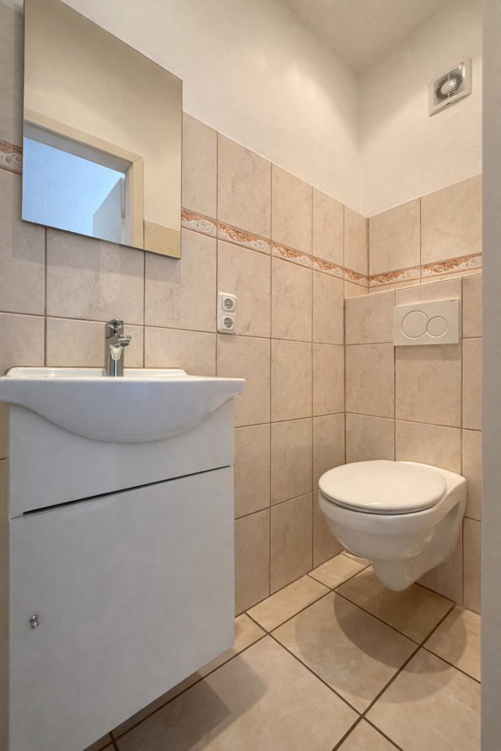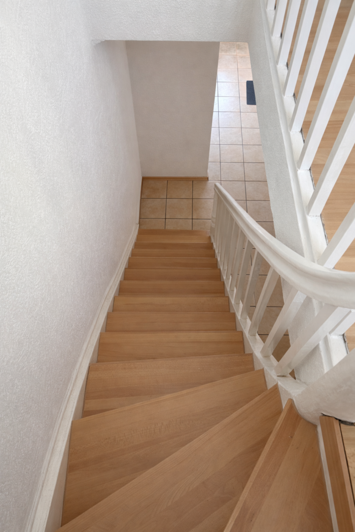 Im Inneren überzeugt das Haus durch eine gelungene Kombination aus klassischem Charme und modernen Elementen. Die im Jahr 2020 erneuerten Fliesen im Wohnzimmer verleihen dem Wohnbereich eine zeitgemäße Note, während neue Treppenstufen für ein harmonisches Gesamtbild sorgen. Dank kontinuierlicher Modernisierungen präsentiert sich die Immobilie in einem gepflegten Zustand: Bereits 1998 wurden im Rahmen einer Kernsanierung sämtliche Wasser- und Abwasserleitungen erneuert. Das Gäste-WC wurde 2010 modernisiert, 2011 erfolgte eine Dachdämmung, und 2021 wurde eine neue Gasheizung installiert, die für zuverlässige Wärme sorgt. Die Energieeffizienzklasse E ist ausgewiesen.