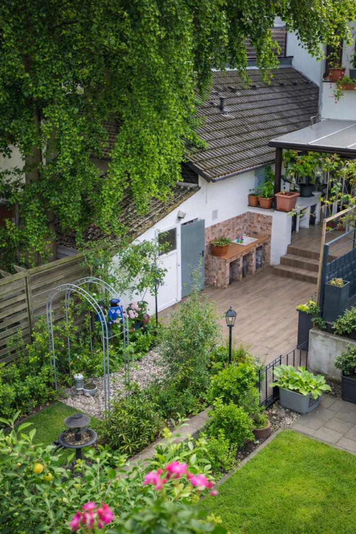 Das im Jahr 1941 in solider Massivbauweise errichtete Haus erstreckt sich über zwei Vollgeschosse und ist vollständig unterkellert – hier stehen Ihnen zusätzliche Nutz- und Abstellflächen zur Verfügung. Das 231 m² große Grundstück bietet neben dem Wohnhaus einen einladenden Gartenbereich, der zu entspannten Stunden im Freien einlädt. Eine im Jahr 2019 neu errichtete Terrasse im Erdgeschoss schafft den perfekten Rahmen für gemeinsame Grillabende oder ein gemütliches Frühstück an der frischen Luft. Ein besonderes Highlight ist die Dachterrasse, die zusätzlichen Freiraum mit Blick über die Umgebung bietet und sonnige Stunden garantiert.