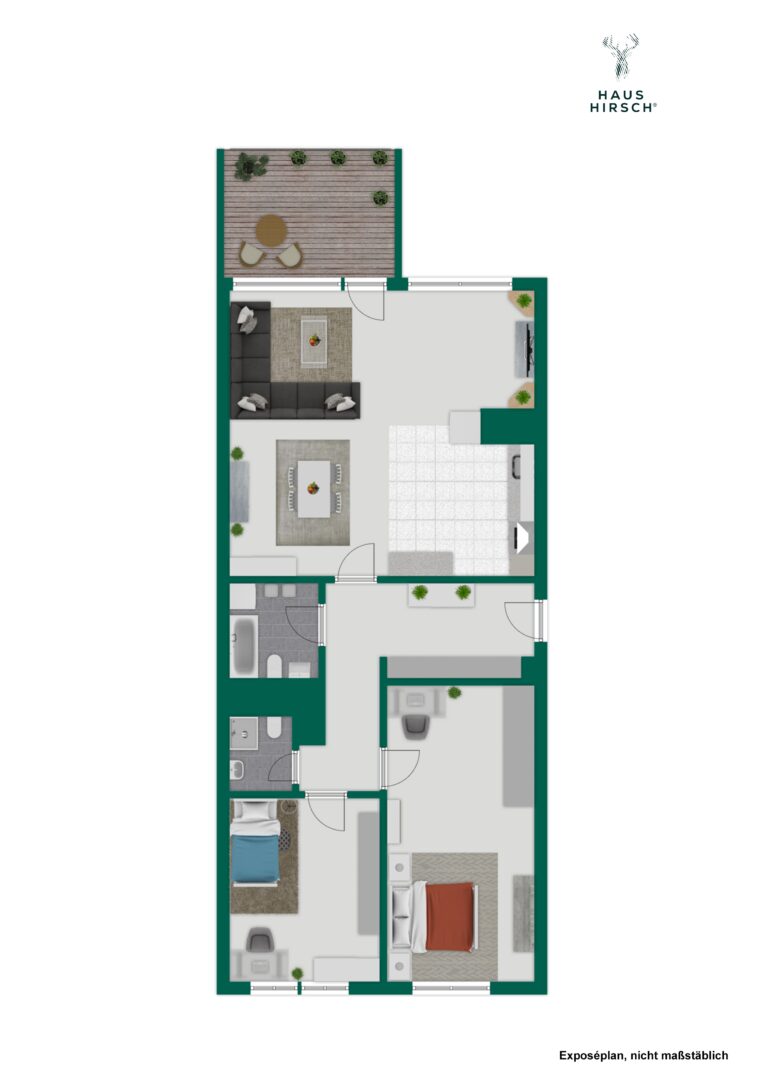 - Zimmer: 3 (2 Schlafzimmer, 1 Wohn- und Essbereich)