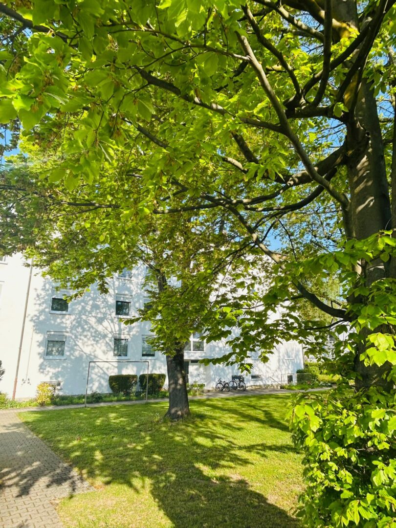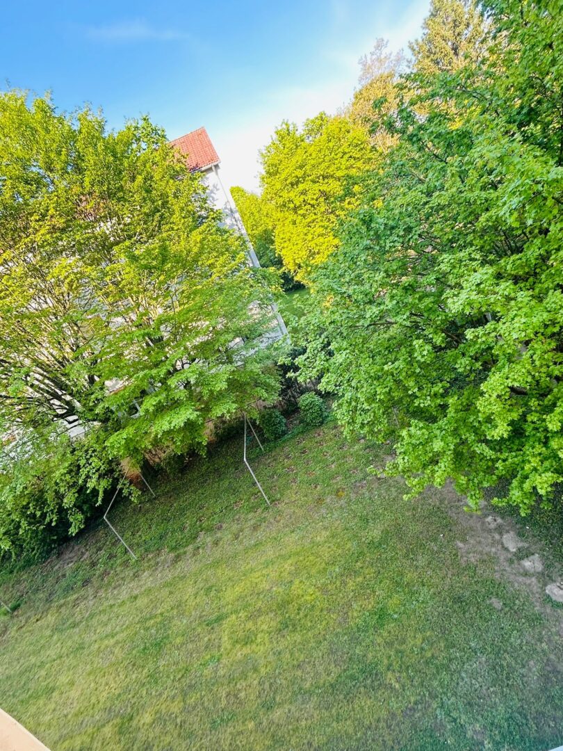 Die Wohnung verfügt über ein großzügiges Wohnzimmer mit Balkon und Blick ins Grüne, einem separaten Esszimmer mit direktem Zugang zur Einbauküche aus Massivholz. Große Fensterflächen sorgen für viel Tageslicht und ein angenehmes Wohngefühl.