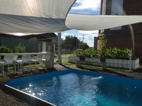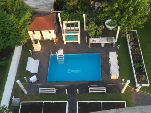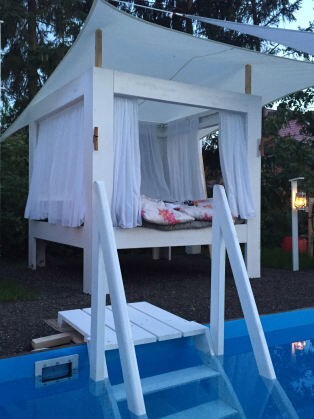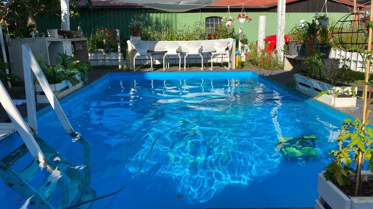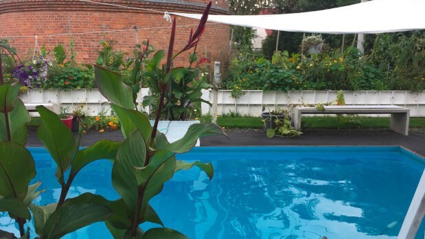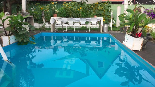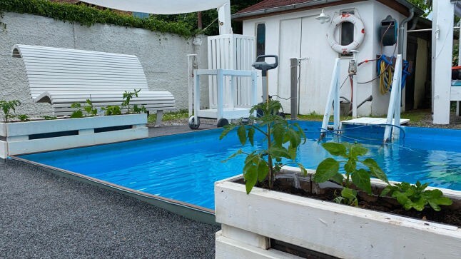 Das charmante Grundstück bietet mehrere Parkplätze und im hinteren Bereich eine private Oase: einen liebevoll angelegten Garten mit stilvoller Lounge und einem erfrischenden Swimmingpool.
