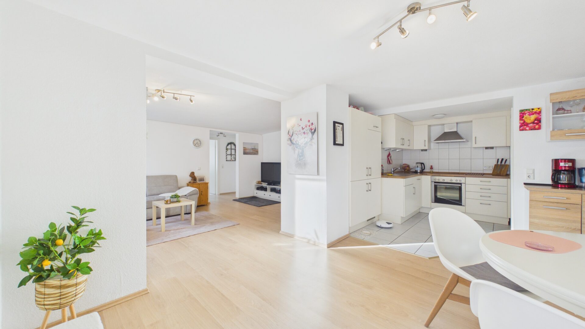 Heller Wohn‑ und Essbereich mit offener Gestaltung und angenehmer Wohnatmosphäre