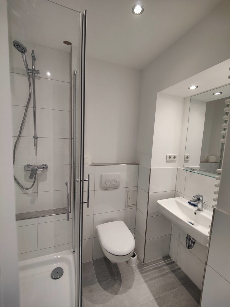 Die Wohnung wurde im Jahr 2023 komplett saniert und erscheint in moderner, zeitloser Optik. Sie bietet eine helle Küchenzeile, ein modernes Duschbad und einen großzügigen Schlaf-/Wohnbereich mit bodentiefen Fenstern und einem kleinen französischen Balkon für viel Licht. Die Balkontüren sind schallgedämmt. Die Wohnung hat einen schönen Laminatboden. Darunter liegt noch das vorhandende Parkett. Zur Wohnung gehört noch ein Kellerabteil, außerdem gibt es eine Gemeinschaftswaschküche mit Waschmaschinen und Trocknern sowie einen Fahrrad-Keller.