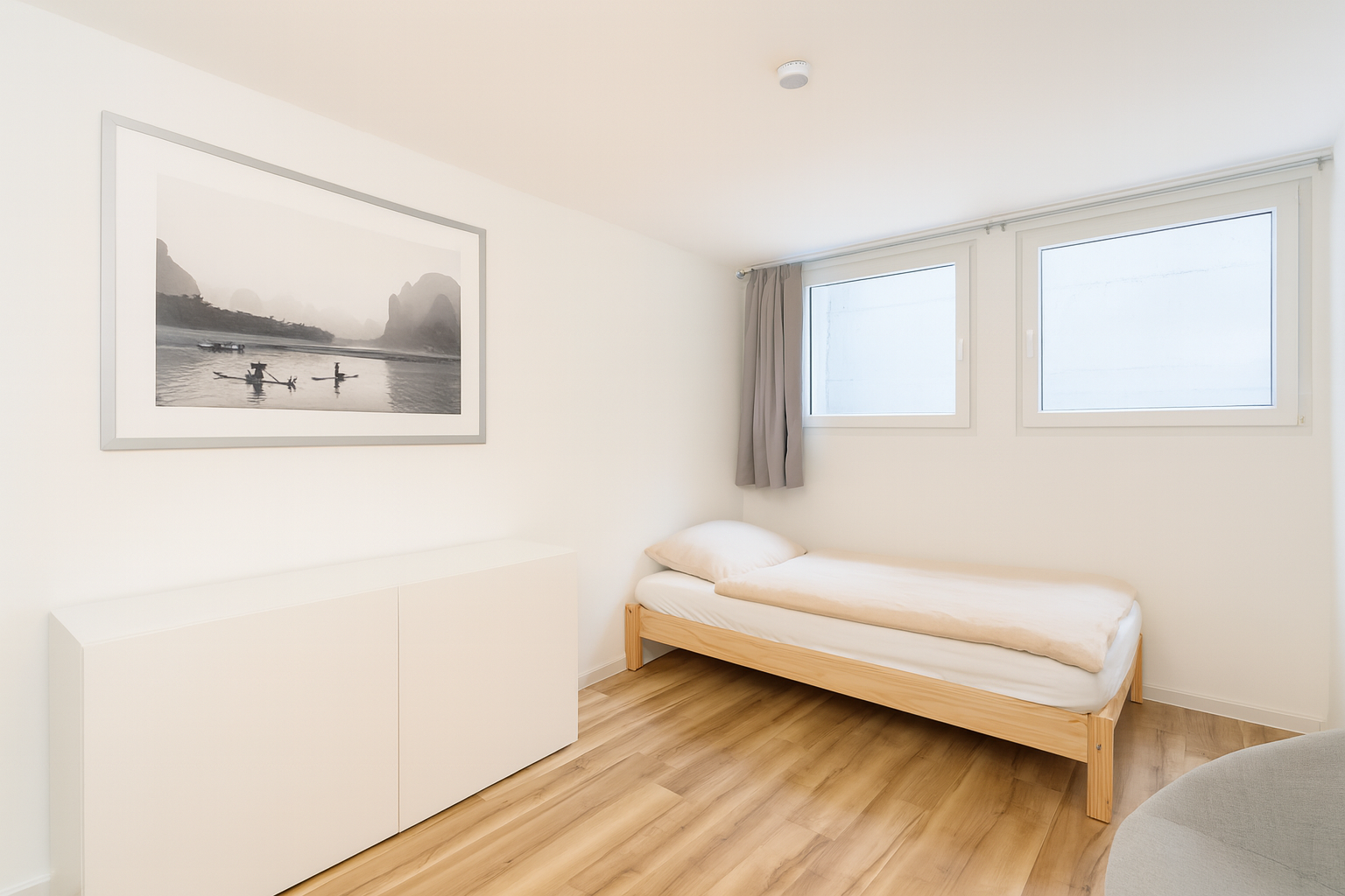 Das Untergeschoss erweitert die Nutzungsmöglichkeiten erheblich: Zwei helle, wohnlich ausgebaute Räume mit Tageslicht eignen sich ideal als Homeoffice, Gästebereich oder Hobbyräume. Ergänzt wird dieser Bereich durch praktische Nebenflächen und eine separate Waschnische.