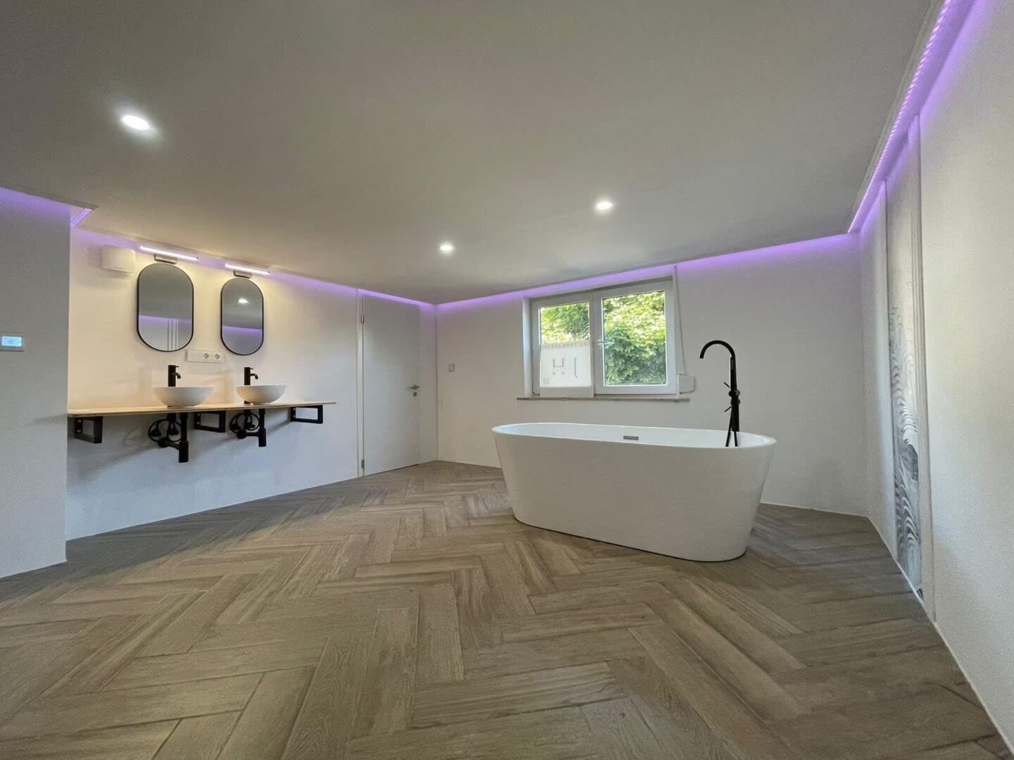 In diesem Haus trifft höchster Wohnkomfort auf eine exklusive Ausstattung. Die Zimmer sind lichtdurchflutet und mit hochwertigen Materialien ausgestattet. Die modernen Bäder sind mit exklusiver Sanitärtechnik und edlen Fliesen versehen. Die große Küche begeistert mit modernen Elektrogeräten und hochwertigen Oberflächen. Dank der Heizungsanlage mit Wärmepumpe genießen Sie eine effiziente und kostengünstige Wärmeversorgung. Großzügige Fensterflächen lassen viel Tageslicht in alle Räume und tragen zur angenehmen Wohnatmosphäre bei. Die Energieeffizienz des Hauses wird durch die hochwertige Dämmung und die auf dem Dach installierte Solaranlage weiter gesteigert. Das gesamte Haus wurde kernsaniert, so dass sowohl innen als auch außen alles erneuert wurde. Dazu gehören die komplette Erneuerung der Fassade und des Dachs sowie die Sanierung der Elektro- und Wasserinstallationen. Alle Räume wurden vollständig renoviert. Insgesamt präsentiert sich die Immobilie in einem neuwertigen Zustand.