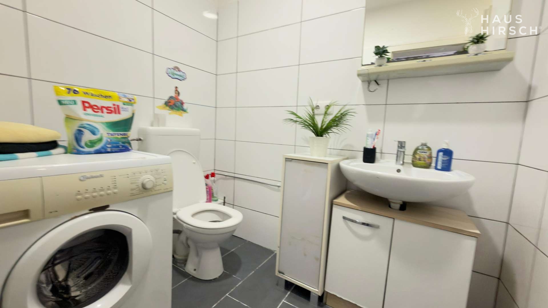 - Die Wohnräume sind mit Fliesen und Laminatboden ausgestattet.