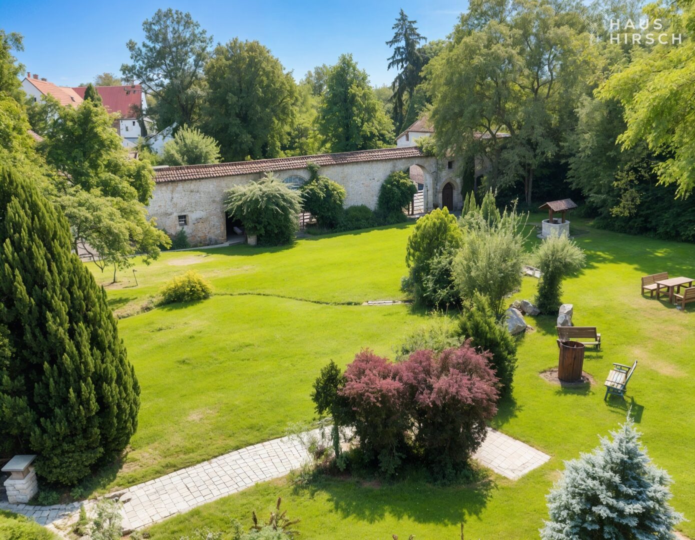 Zum Ensemble gehört ein Zehntstadel mit ca. 450 m² Grundfläche. Dieser diente früher der Lagerung von Naturalabgaben, ist heute teilrestauriert und vielseitig nutzbar – ob für Events, Gästeunterkünfte oder durch Wiederaufbau als zusätzliche Wohn- oder Gewerbefläche.
