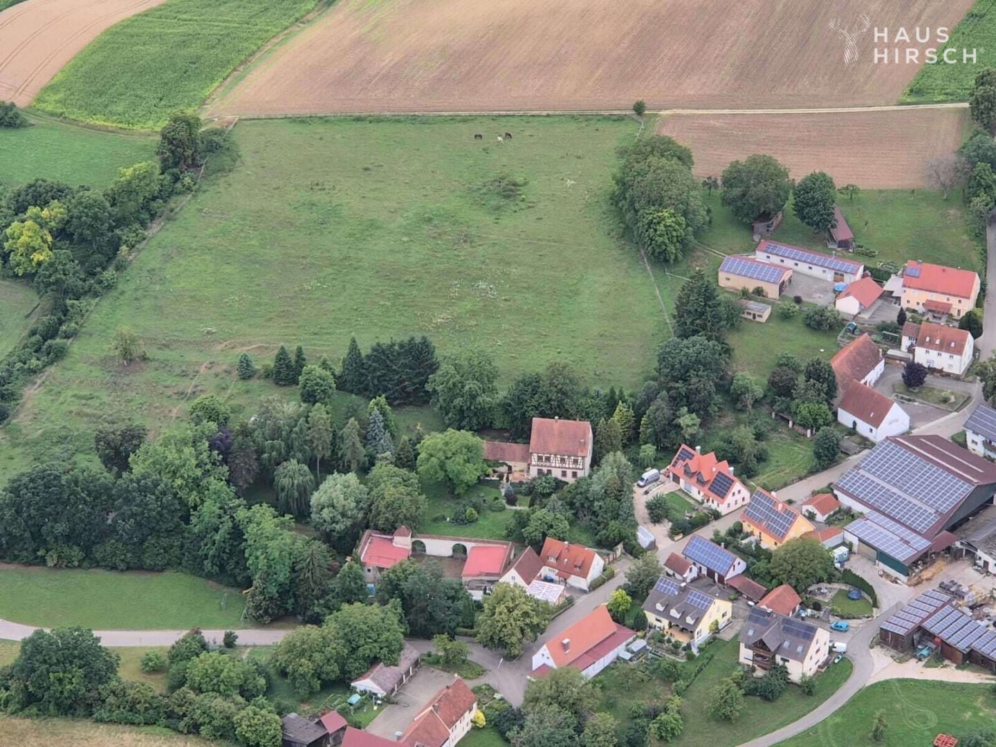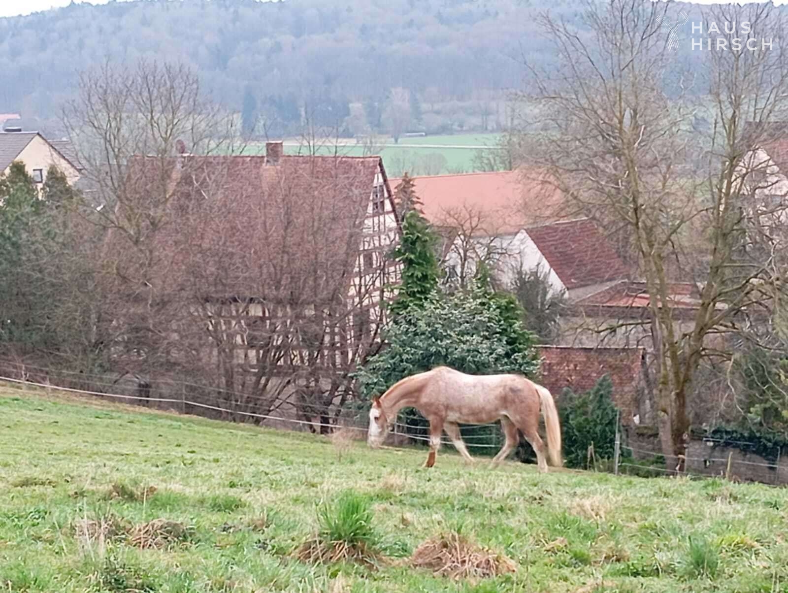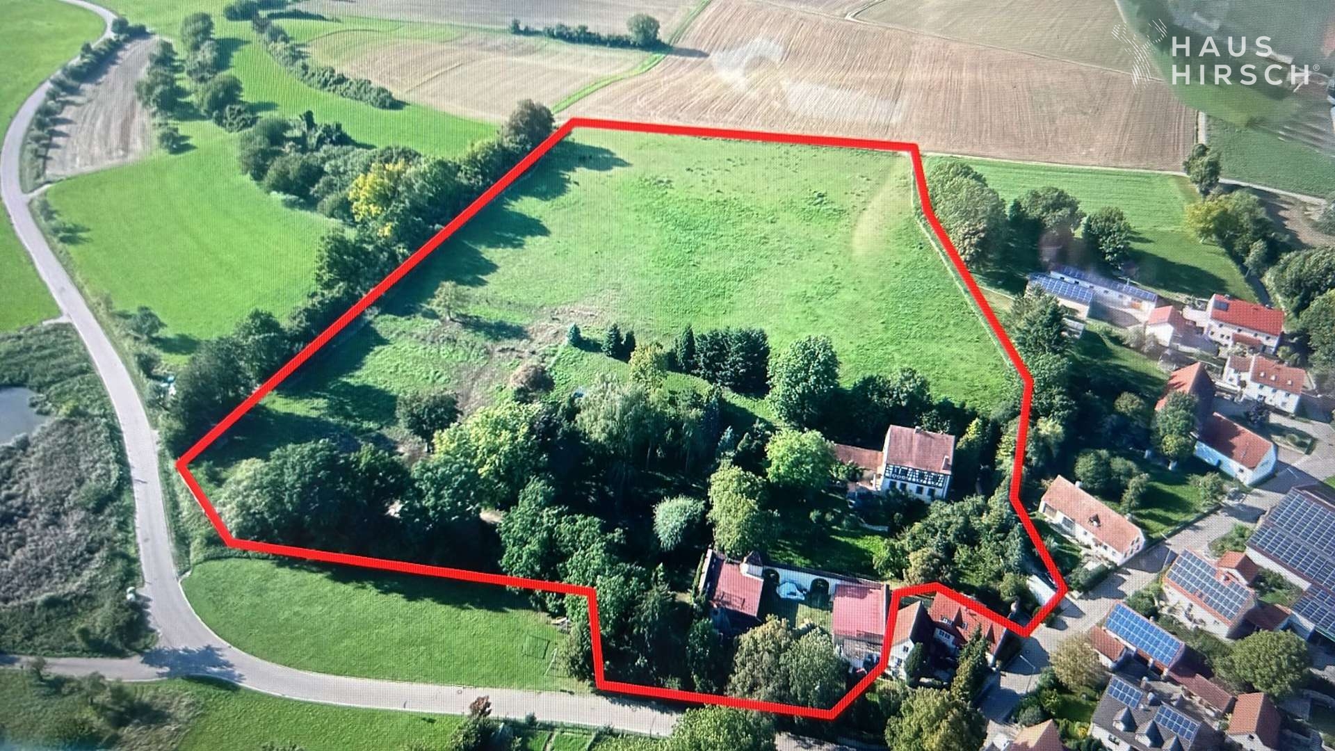 Das parkartige Grundstück umfasst ca. 3,26 ha Eigenland mit altem Baumbestand, Weiher, Naturquelle, Fachwerk-Gartenhaus, Schlossweide mit Offenställen und befestigtem Paddock. Optional können angrenzende Flächen erworben werden, sodass sich die Gesamtgröße auf knapp 7 Hektar erweitert.