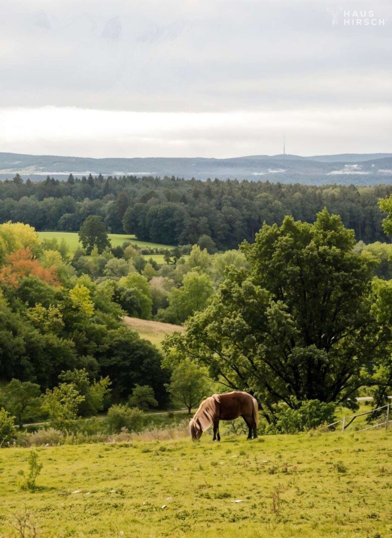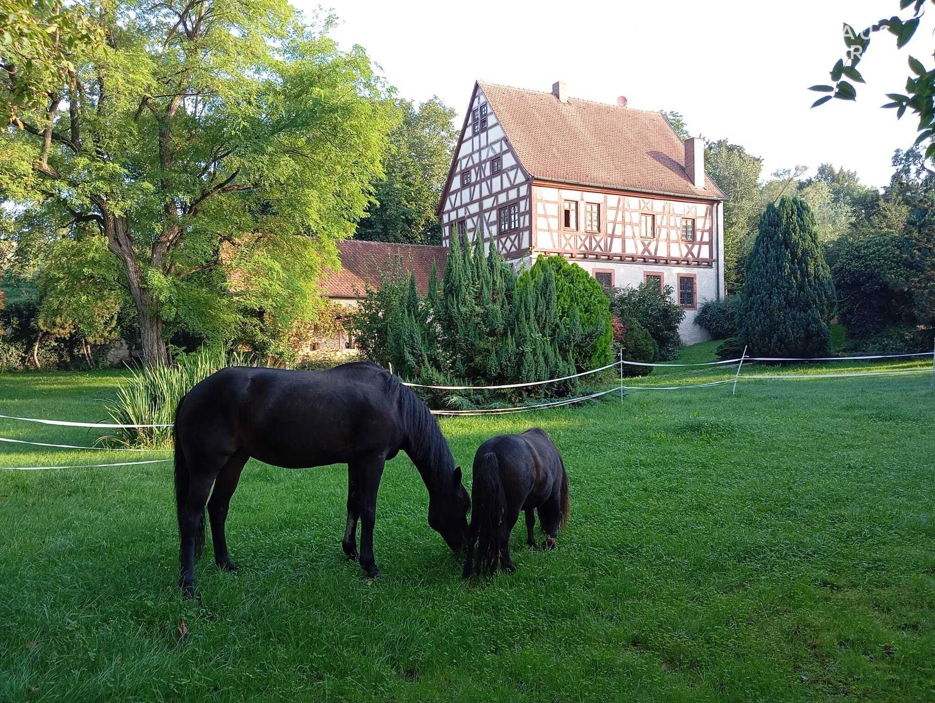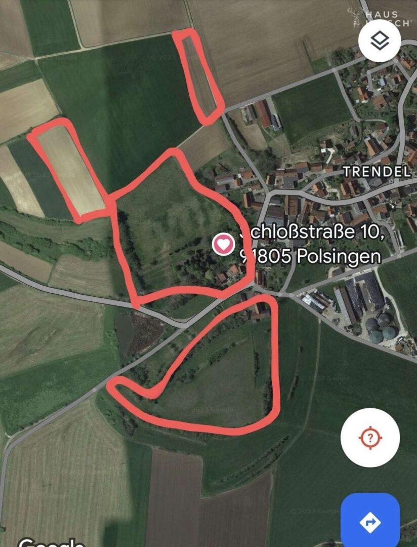 Das parkartige Grundstück umfasst ca. 3,26 ha Eigenland mit altem Baumbestand, Weiher, Naturquelle, Fachwerk-Gartenhaus, Schlossweide mit Offenställen und befestigtem Paddock. Optional können angrenzende Flächen erworben werden, sodass sich die Gesamtgröße auf knapp 7 Hektar erweitert.