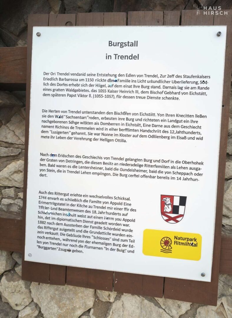 Schloss Trendel ist ein einzigartiges Anwesen mit über 1.000-jähriger Geschichte. Erstmals um 950 erwähnt und vermutlich vor 1000 erbaut, wurde es in den Jahren 1978–1982 umfassend restauriert (Investitionsvolumen ca. 1,8 Mio. DM) und mehrfach denkmalgerecht instandgesetzt, zuletzt 2016 mit der Erneuerung der Fachwerk-Giebelwand. Seit 2018 befindet sich das Schloss im Dornröschenschlaf und wartet nun auf eine neue, inspirierende Nutzung.