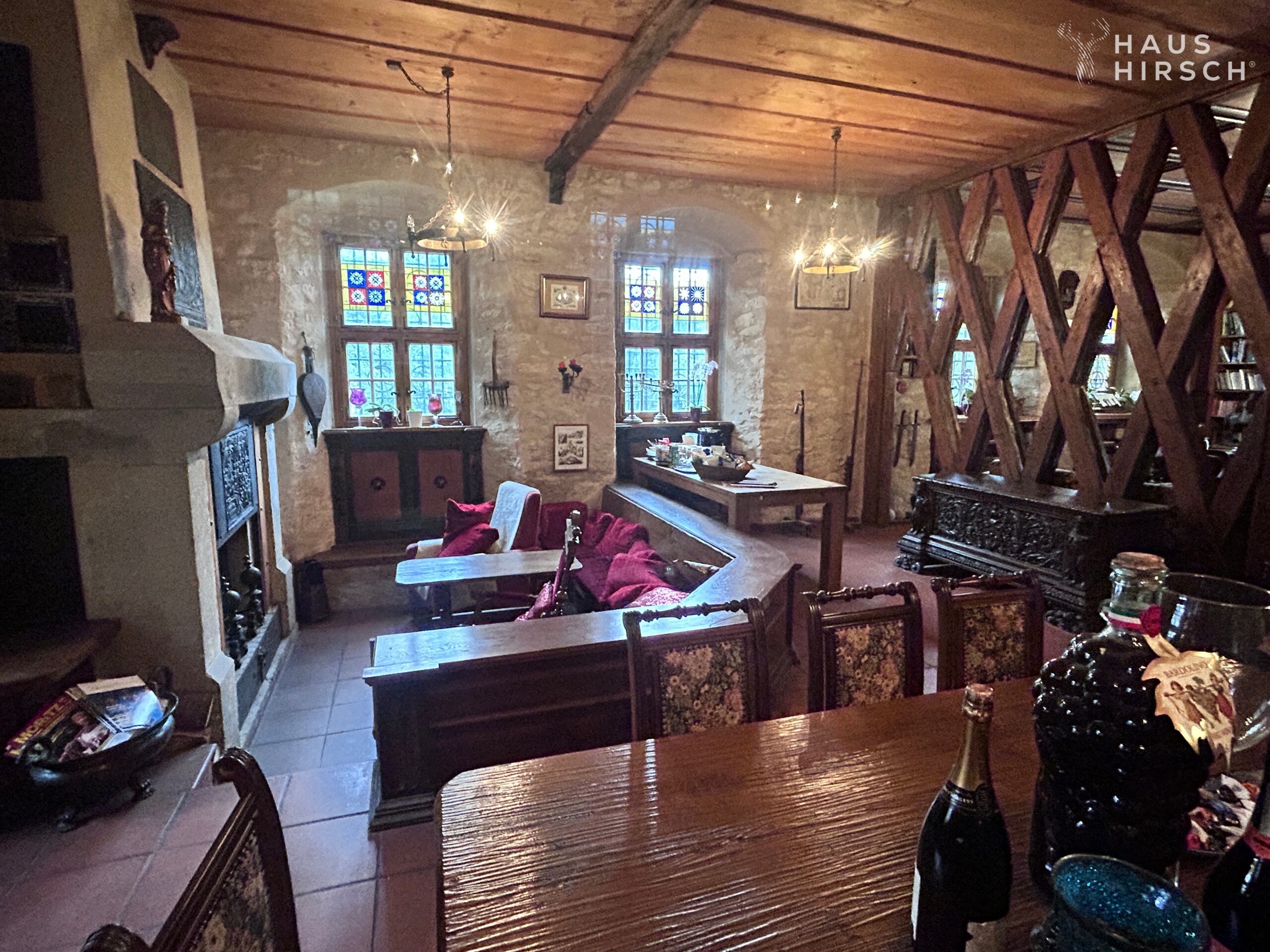 Das Schloss bietet insgesamt ca. 439 m² Wohn- und Grundfläche mit Rittersaal, Kaminzimmer, Bibliothek, zwei Wohneinheiten sowie einem historischen Gewölbekeller. Das Dachgeschoss ist bereits vorbereitet und eröffnet zusätzliche ca. 171 m² Ausbaupotenzial.