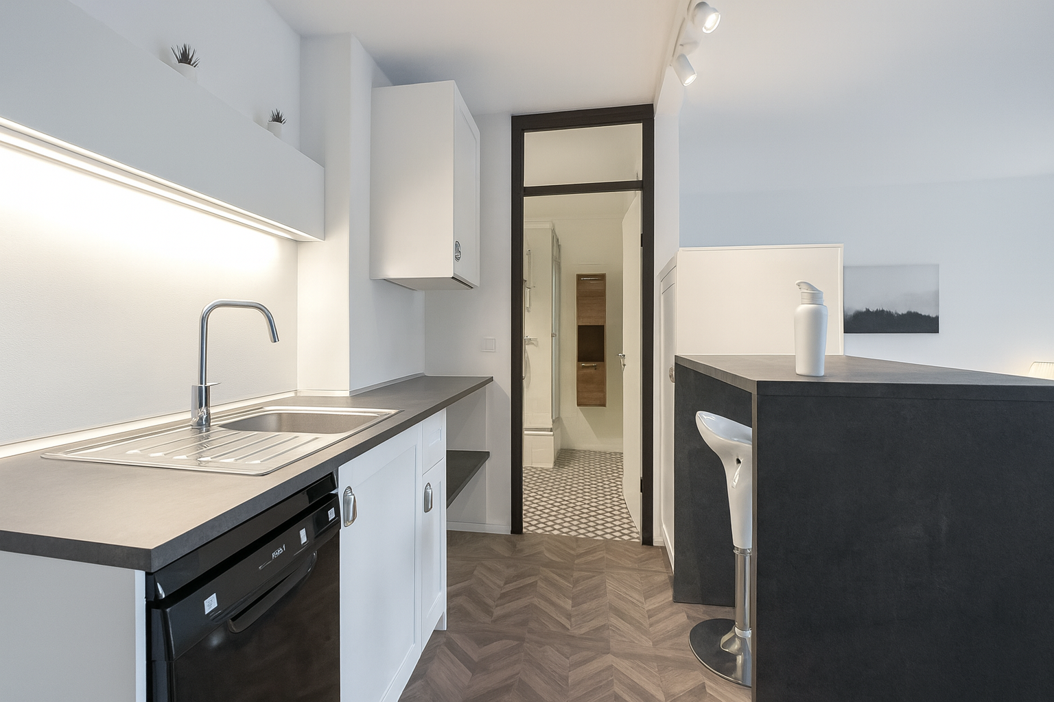 Hier erwartet Sie eine moderne Pantryküche, perfekt ausgestattet für Ihre Kochbedürfnisse.