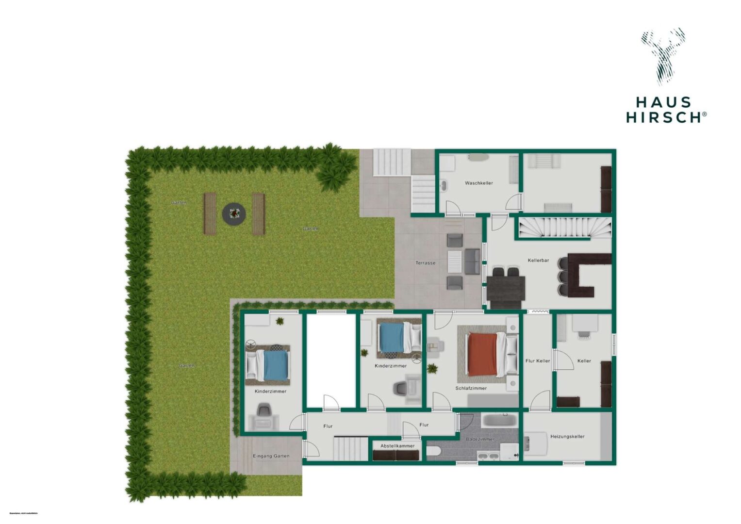 Das Untergeschoss überrascht im zweiten Bereich mit einer einladenden Bar, ergänzt durch Wasch- und Heizkeller sowie zusätzliche Stauraumflächen.