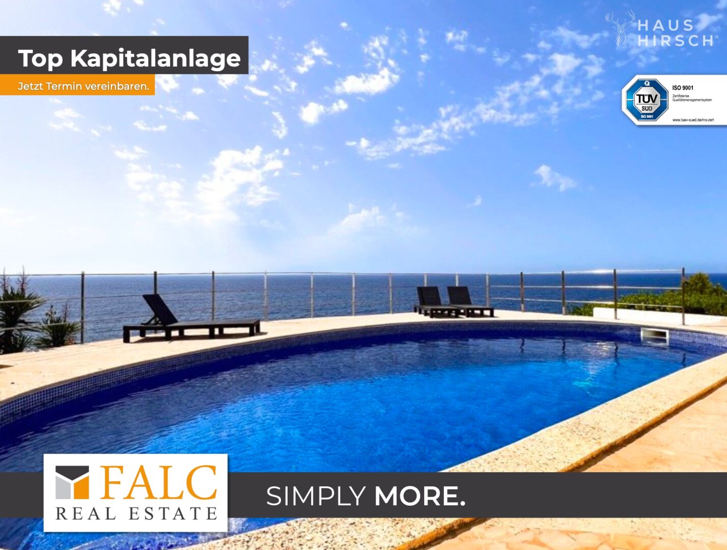 Auf einem 1.372 m2 Villen Grundstück, das aus zwei benachbarten Parzellen besteht, thront über dem Mittelmeer dieses impressionante Chalet. Geniessen Sie den fulminanten Meerblick in 1. Meereslinie bis zur südlich gelegenen Nachbarinsel Cabrera und die frische Meeresbrise. Sichern Sie sich eines der letzten Juwele unserer Insel! Sie erwerben diese Doppelparzelle in Toplage und erfeuen sich am Ambiente der typisch mallorquinischen Sommervilla im 80er-Stil oder bauen eine neue prominente Villa mit bis zu 680 m2 Wohnfläche.