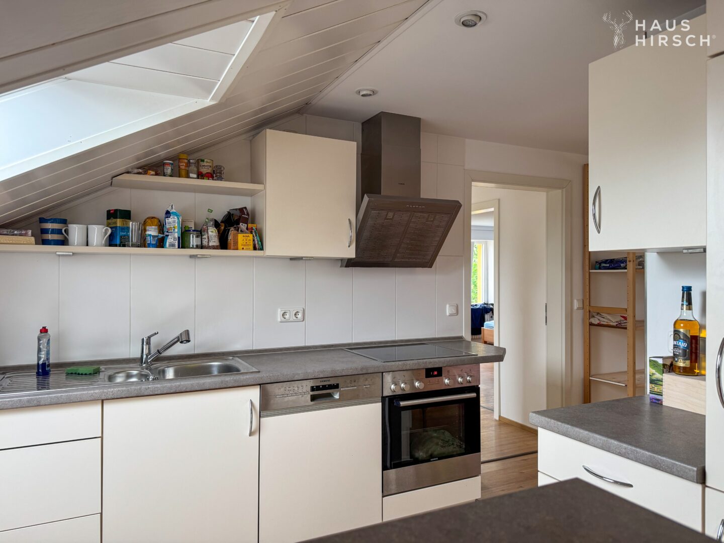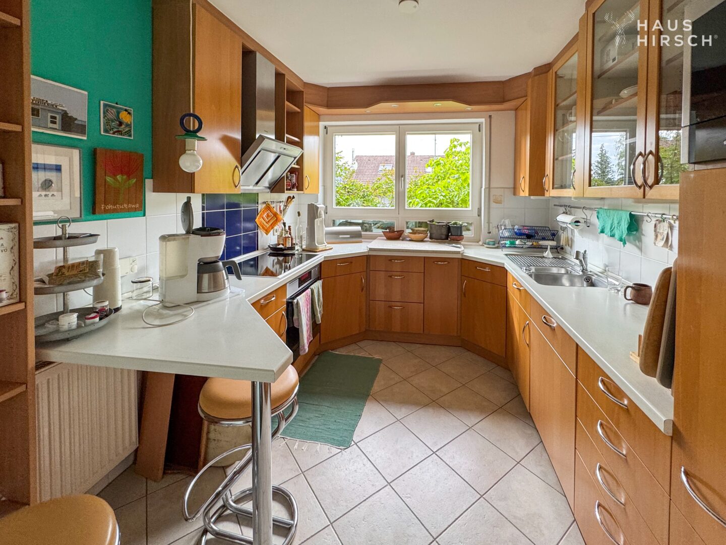 •Separate Küche mit Einbauküche, Blick in den Garten und Zugang zum Essplatz