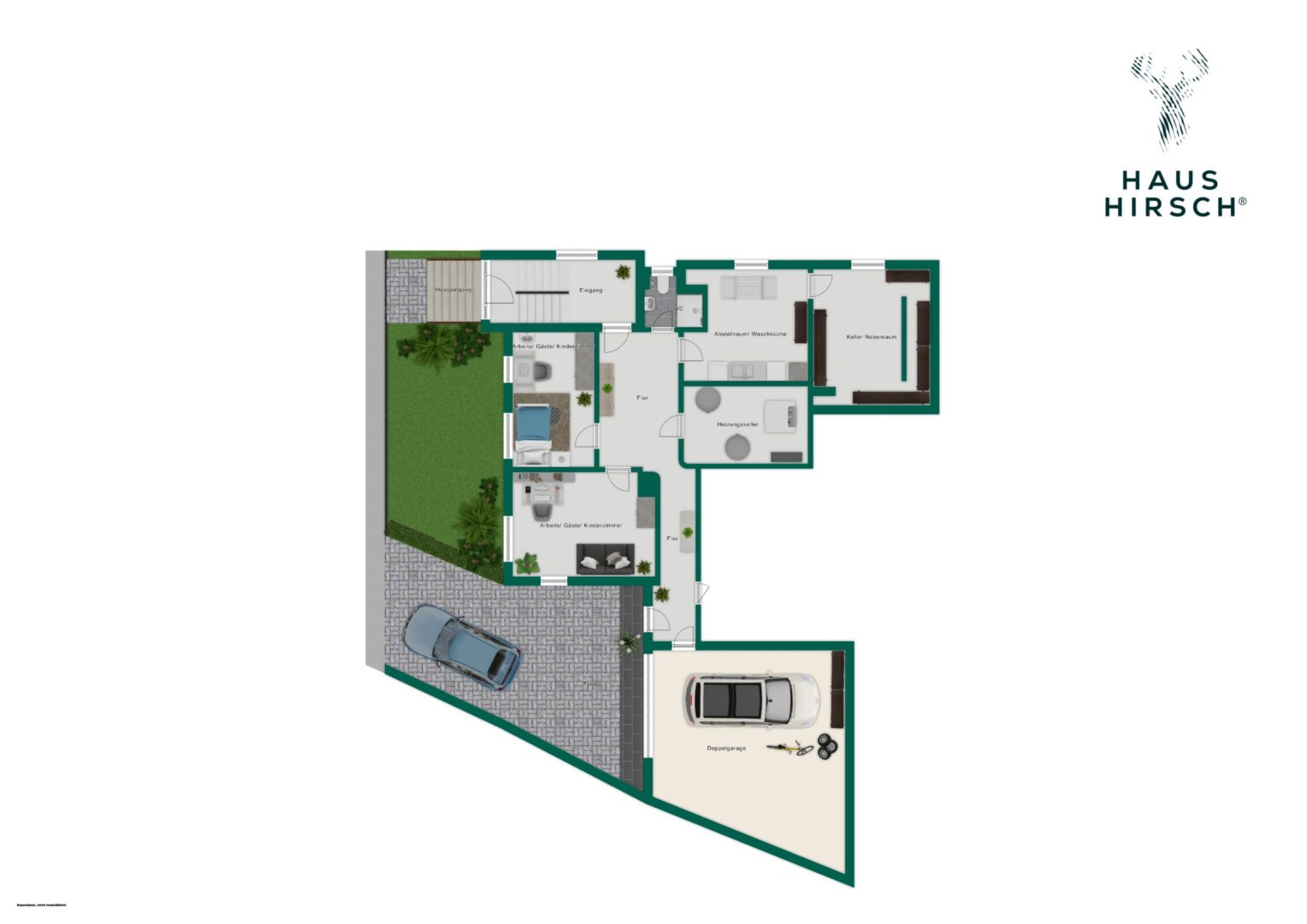 •Interner Zugang zur geräumigen Doppelgarage mit Werkbankbereich