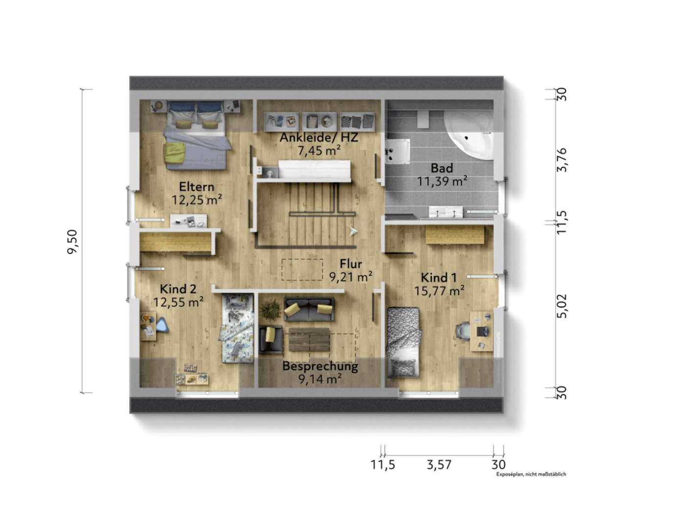 Großzügiger Elternbereich mit Schlafzimmer und begehbarem Ankleidezimmer