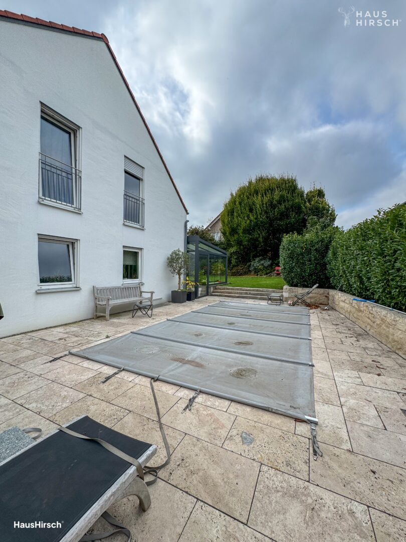 STILVOLL WOHNEN IN ESSENBACH – ARCHITEKTENHAUS MIT POOL, WINTERGARTEN & GARTENPARADIES