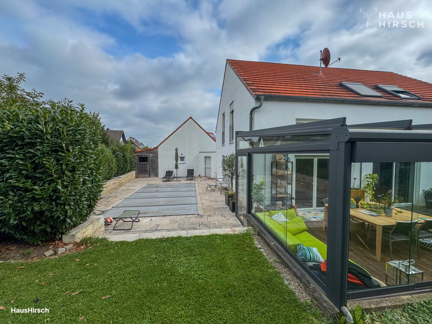 Der gepflegte Garten bietet Ihnen eine Oase der Ruhe und ist perfekt für entspannte Stunden im Grünen. Ein Highlight des Anwesens ist der eigene Pool, der an warmen Sommertagen für erfrischende Abkühlung sorgt. Der angrenzende Wintergarten ermöglicht es Ihnen, das ganze Jahr über die Natur zu genießen.
