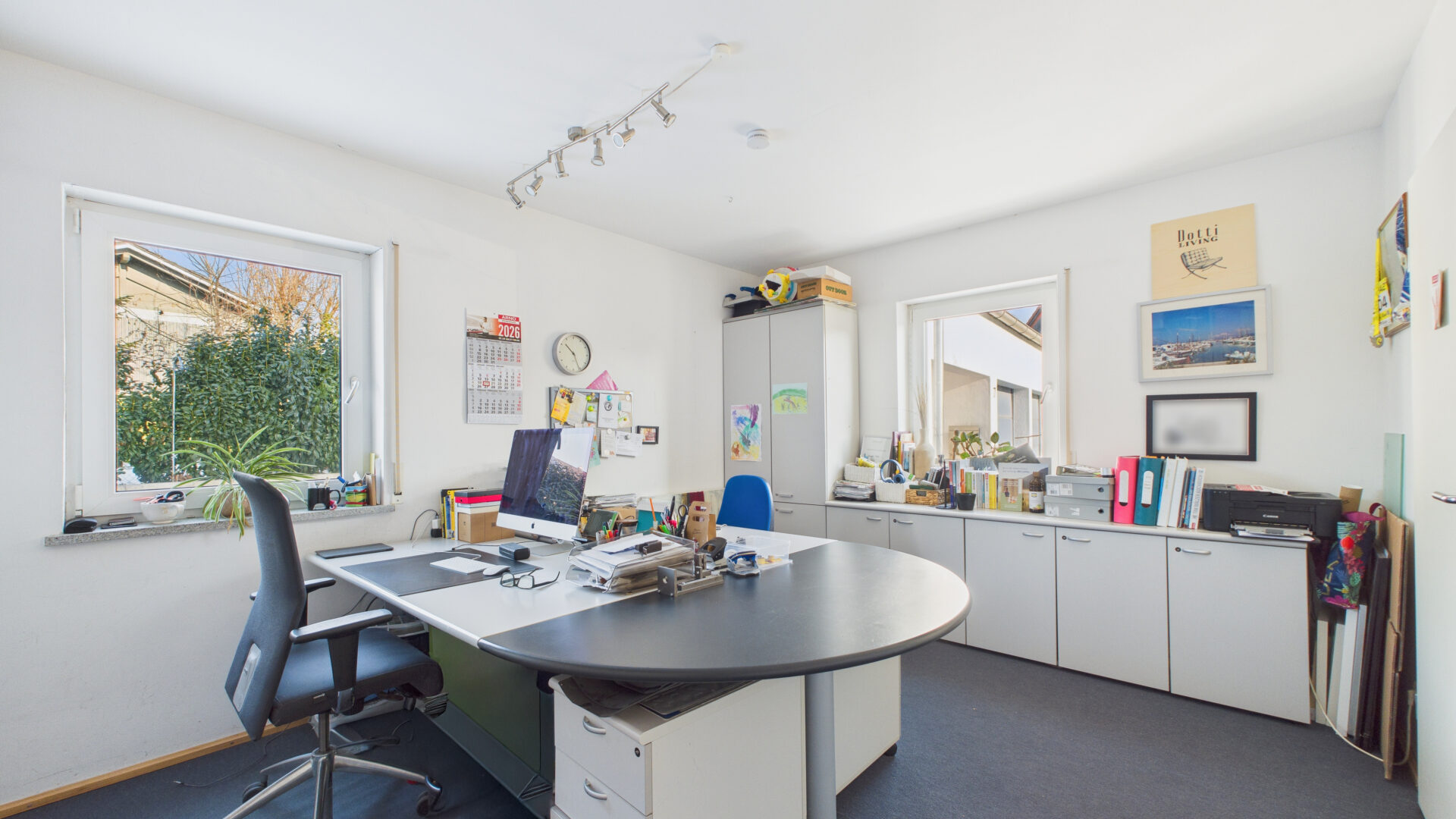 Großes Büro/ Homeoffice oder Gästezimmer mit Blick in den Vorgarten