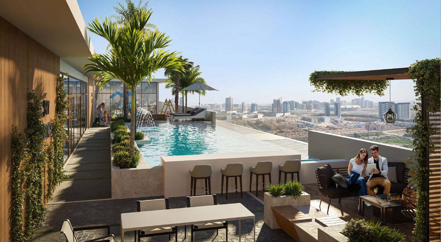 Wenn Sie diese 1-Schlafzimmer-Wohnung betreten, werden Sie von einem hellen Wohn- und Essbereich begrüßt, der sich perfekt zum Entspannen oder für Gäste eignet. Die modernen Oberflächen im gesamten Raum schaffen ein elegantes und stilvolles Ambiente. Stellen Sie sich vor, Sie genießen Ihren Morgenkaffee auf dem großzügigen Privatbalkon und genießen dabei den atemberaubenden Blick auf die Skyline der Stadt. Und wenn Sie die Seele baumeln lassen wollen, bieten der Infinity-Swimmingpool auf dem Dach und die Sonnenterrasse mit Lounge-Sitzgelegenheiten den idealen Ort zum Entspannen. Für diejenigen, die Wert auf Fitness und Wellness legen, bieten das voll ausgestattete Fitnesscenter, die Sauna und das Dampfbad eine Reihe von Möglichkeiten, um gesund und erholt zu bleiben. Die Meditations- und Entspannungszonen bieten einen ruhigen Rückzugsort aus dem hektischen Stadtleben. Familien werden den Kinderspielplatz und den Kinderpool zu schätzen wissen, was diese Wohnung zu einer idealen Wahl für diejenigen macht, die eine Balance zwischen Luxus und Zweckmäßigkeit suchen. Die Ladestationen für Elektrofahrzeuge zeugen zudem von einem Engagement für Nachhaltigkeit und Umweltbewusstsein. Nur wenige Minuten vom Dubai Miracle Garden entfernt und mit schnellem Zugang zur Mall of the Emirates, der Dubai Mall, dem Stadtzentrum und dem Dubai International Airport bietet diese Wohnung eine hervorragende Anbindung an alle Annehmlichkeiten und Attraktionen, die die Stadt zu bieten hat. Lassen Sie sich die Gelegenheit nicht entgehen, dieses moderne urbane Refugium zu Ihrem neuen Zuhause oder Ihrer Anlageimmobilie zu machen. Vereinbaren Sie noch heute einen Besichtigungstermin und erleben Sie die nahtlose Mischung aus zeitgenössischem Design und luxuriösen Annehmlichkeiten, die diese Wohnung zu bieten hat.