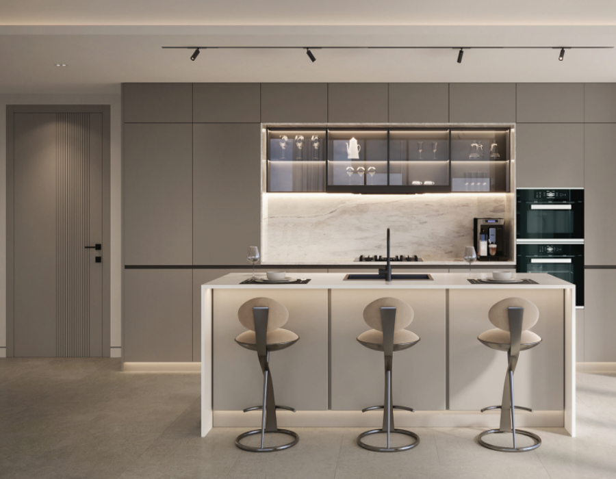Wenn Sie das Apartment mit drei Schlafzimmern im Parkway by Prestige One in Meydan Horizon, Dubai, betreten, werden Sie mit einem Gefühl von Luxus und Eleganz begrüßt. Der geräumige Wohnbereich ist mit natürlichem Licht durchflutet und schafft eine warme und einladende Atmosphäre. Die voll ausgestattete Küche ist der Traum eines jeden Kochs, mit modernen Geräten und eleganten Oberflächen.