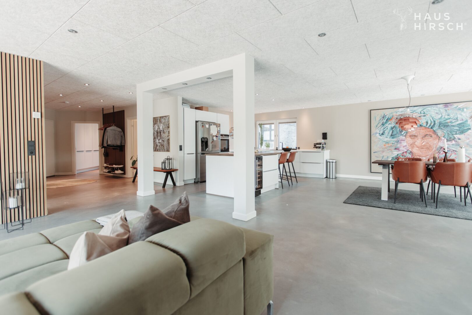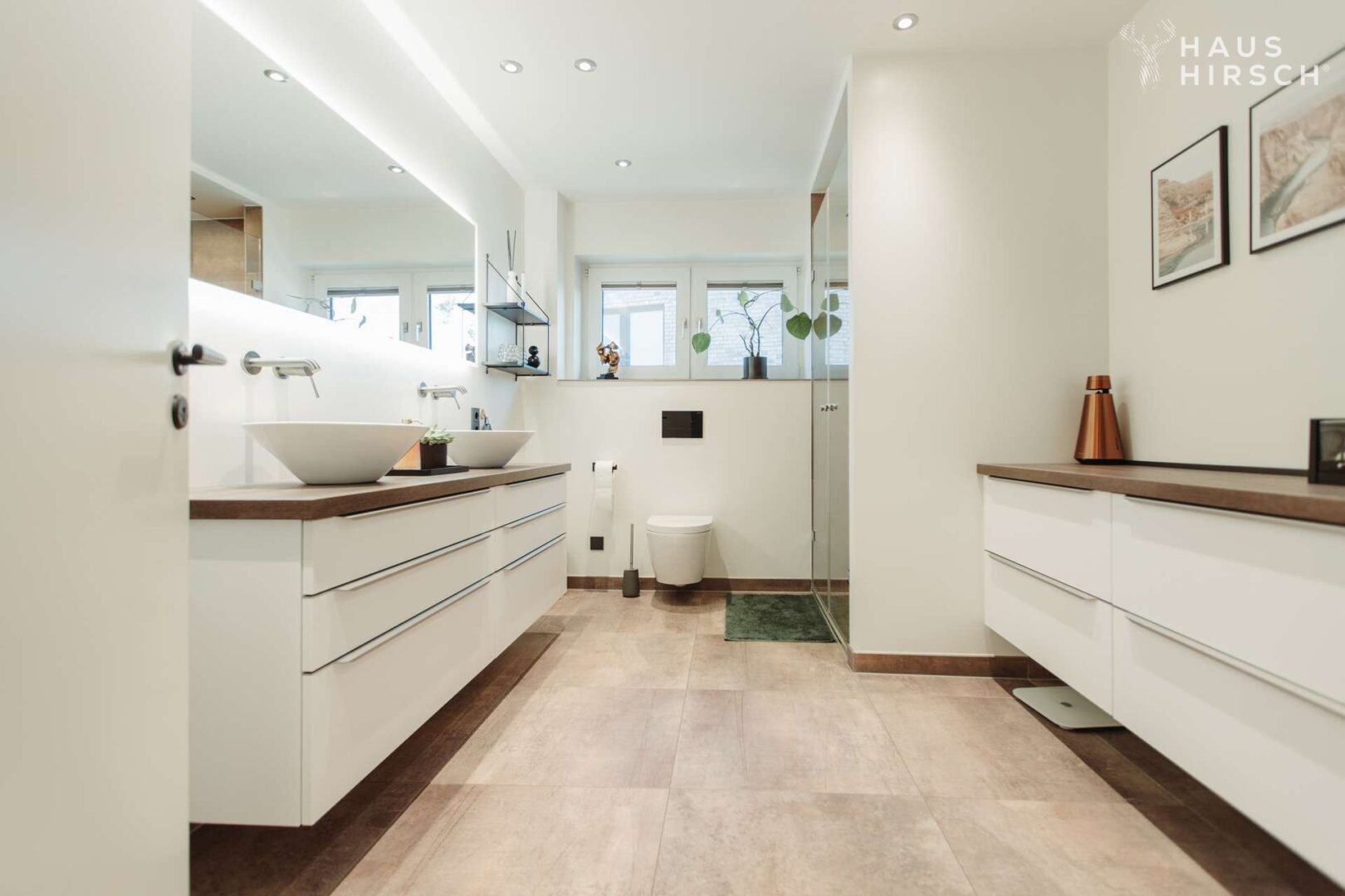 Diese beiden sehr modern ausgestatteten Wohnungen befinden sich in einem schönen Haus in ruhiger Wohnlage und bieten Ihnen eine gehobene Ausstattung und Sicherheit durch installierte Kameras. Die große Wohnung im Hochparterre erstreckt sich über ca. 201 qm und beeindruckt durch offene, durchdachte Bauweise. Der polierte Betonfussboden verleiht dem Wohnbereich einen edlen Charakter, während die Keramikfliesen in Fischgrät-Holzoptik in den Schlafzimmern Gemütlichkeit ausstrahlen.