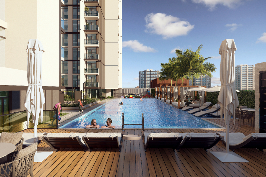 Für Ihren Komfort und Ihren Seelenfrieden gibt es einen 24/7-Sicherheitsdienst mit CCTV-Überwachung, überdachte Parkplätze auf mehreren Etagen und Hochgeschwindigkeitsaufzüge für einen einfachen Zugang zu Ihrer Wohnung. Die zentrale Klimaanlage und der Wartungsdienst sorgen dafür, dass Sie sich in aller Ruhe entspannen und erholen können.