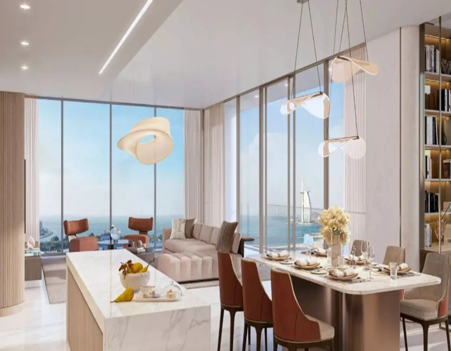 Wenn Sie dieses Apartment mit vier Schlafzimmern in Palm Beach Towers 3 am Eingang von Palm Jumeirah, Dubai, betreten, werden Sie sofort von dem atemberaubenden Panoramablick auf den Arabischen Golf, die Skyline des Yachthafens und Palm Jumeirah angezogen. Der 51-stöckige Wohnturm bietet ein luxuriöses Wohnerlebnis mit Apartments mit 1 bis 3 Schlafzimmern und charakteristischen Penthäusern, von denen viele komplett von B&B Italia eingerichtet sind. Bei der Erkundung der Annehmlichkeiten werden Sie exklusiven Zugang zu einem privaten Beach Club, einem Infinity-Pool, einem voll ausgestatteten Fitnessstudio, einem Spa, einem Yoga-Bereich und einem Einzelhandelspodium mit Cafés und Restaurants genießen können. Die durchdacht gestalteten Räume bieten eine perfekte Mischung aus Komfort und Stil, ideal für Entspannung und Unterhaltung. Der angestrebte Fertigstellungstermin im ersten Quartal 2026 garantiert ein modernes und anspruchsvolles Wohnumfeld. Ob Sie die atemberaubende Aussicht von Ihrer privaten Terrasse aus bewundern oder einen gemütlichen Spaziergang entlang des unberührten Strandes machen, diese Wohnung bietet ein bemerkenswertes Gefühl von Ruhe und Luxus. Erleben Sie das ultimative Leben am Wasser in den Palm Beach Towers 3, wo jedes Detail sorgfältig ausgearbeitet wurde, um Ihren Lebensstil zu verbessern.